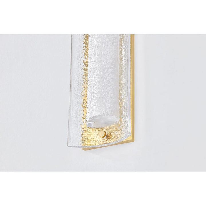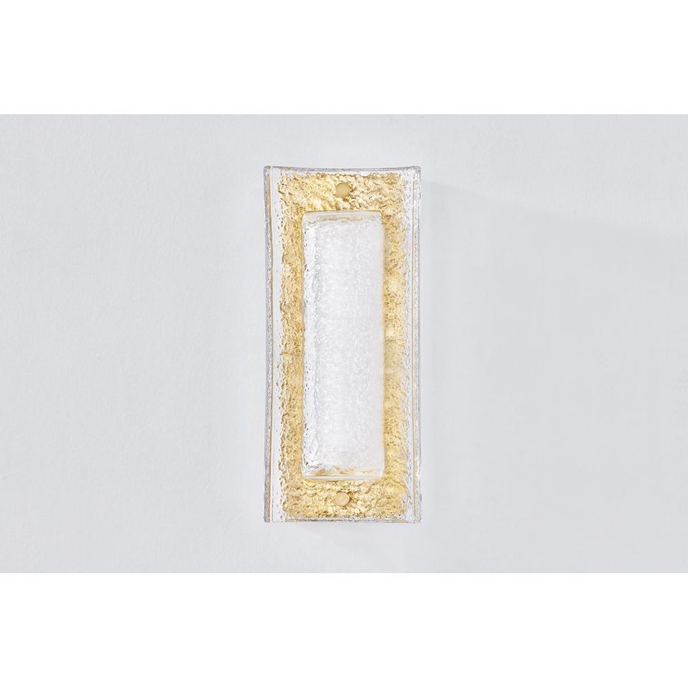 Diffusing soft light through its translucent, ice-like Piastra glass surface, Philmont is captivating in its simplicity. As the glass harmonizes with the Aged Brass backplate, it creates a multi-layered exchange between materiality, texture, and the reflective quality of the fixture. The white glass enhances the gentle illumination provided by the energy-efficient LED lighting, creating a serene glow.