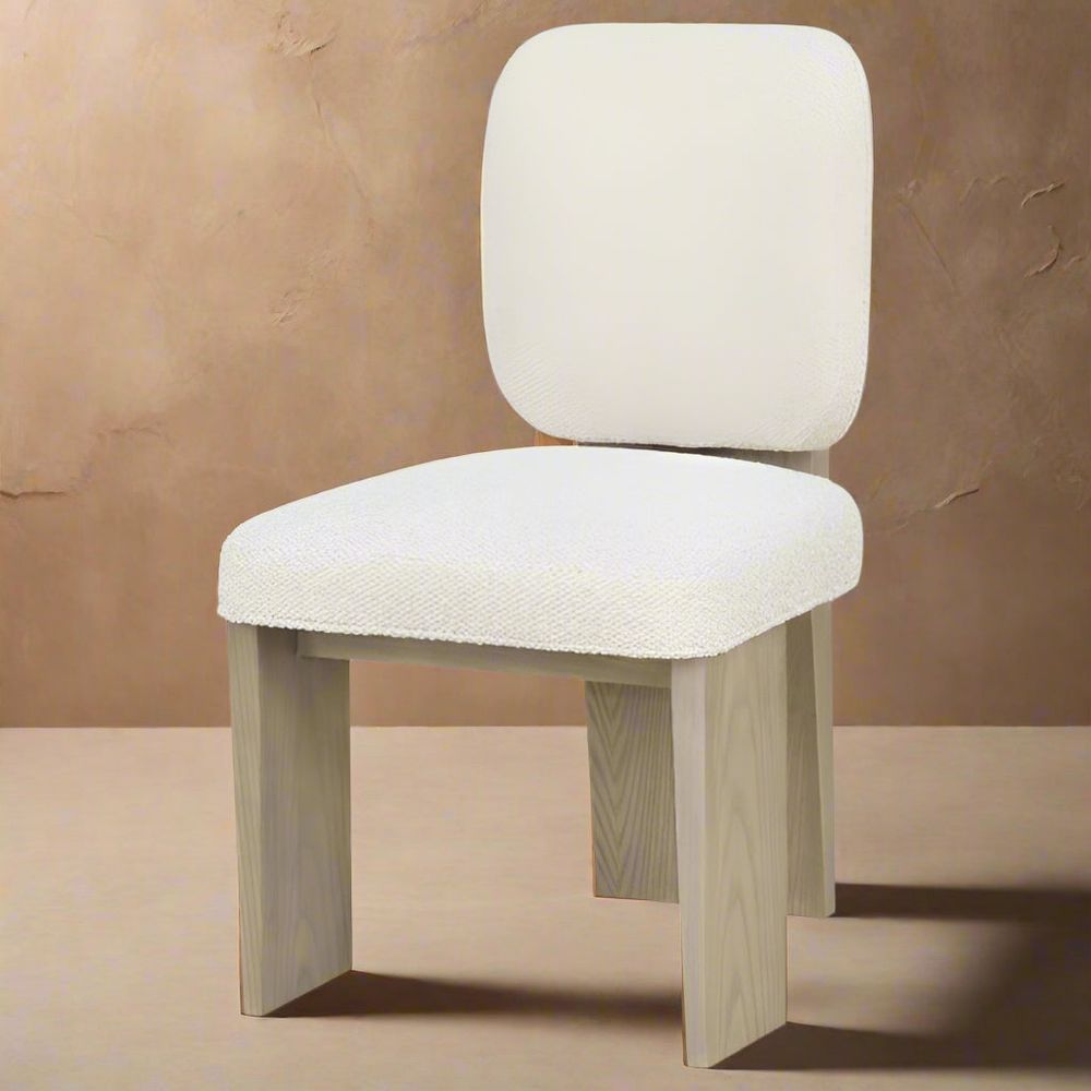 The Poppy Side Chair features a unique 3 legged base that transitions the back leg seamlessly into the chair back. The bold silhouette lends itself well to both contemporary and transitional spaces without being overly dramatic. This chair is available in an off-white fabric, but can be customized on request in the fabric and finish of your choosing. Contact our team for details.