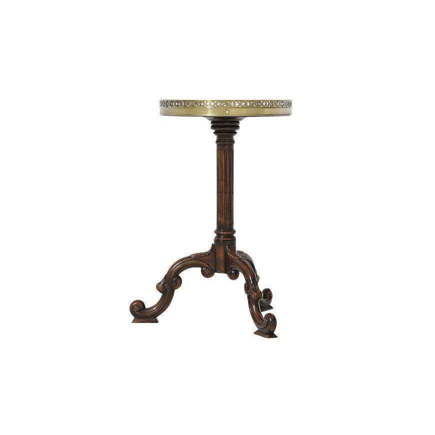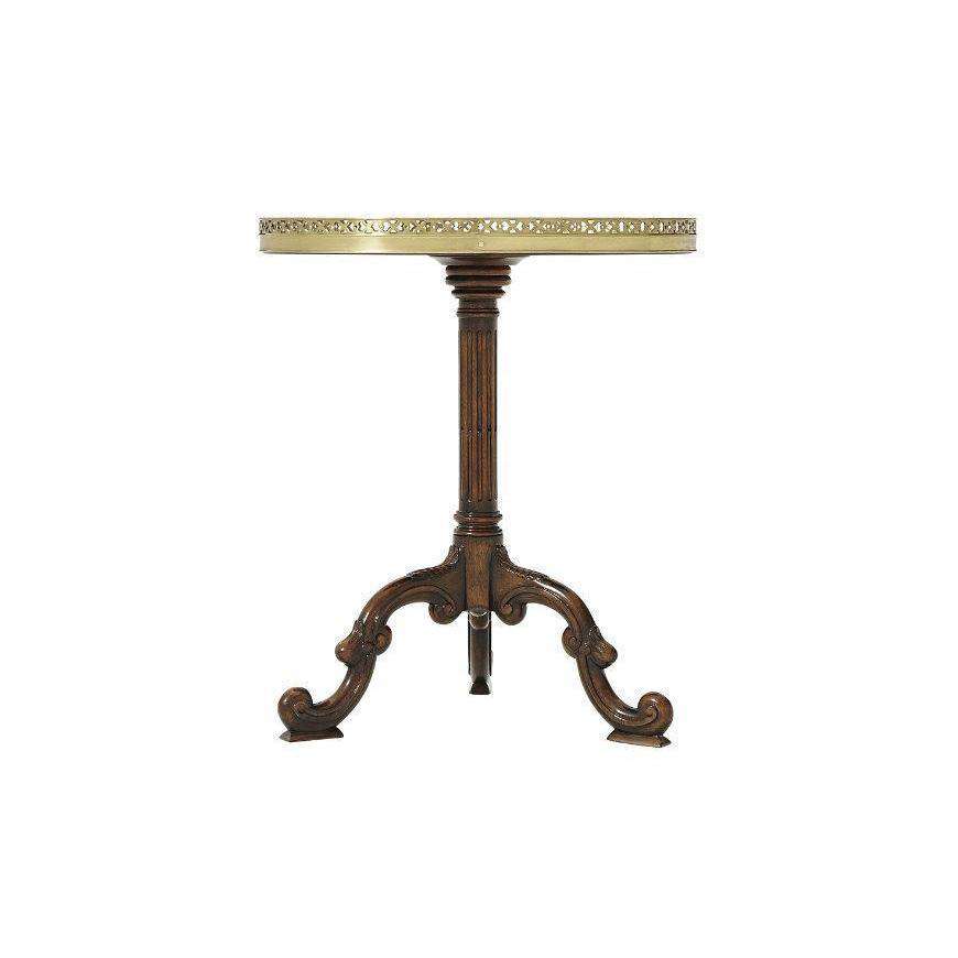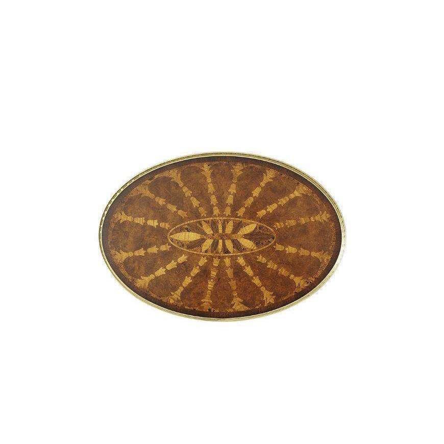 A mahogany and burl sunburst parquetry oval lamp table, with brass gallery and fluted column, on C scroll legs. The original George III.