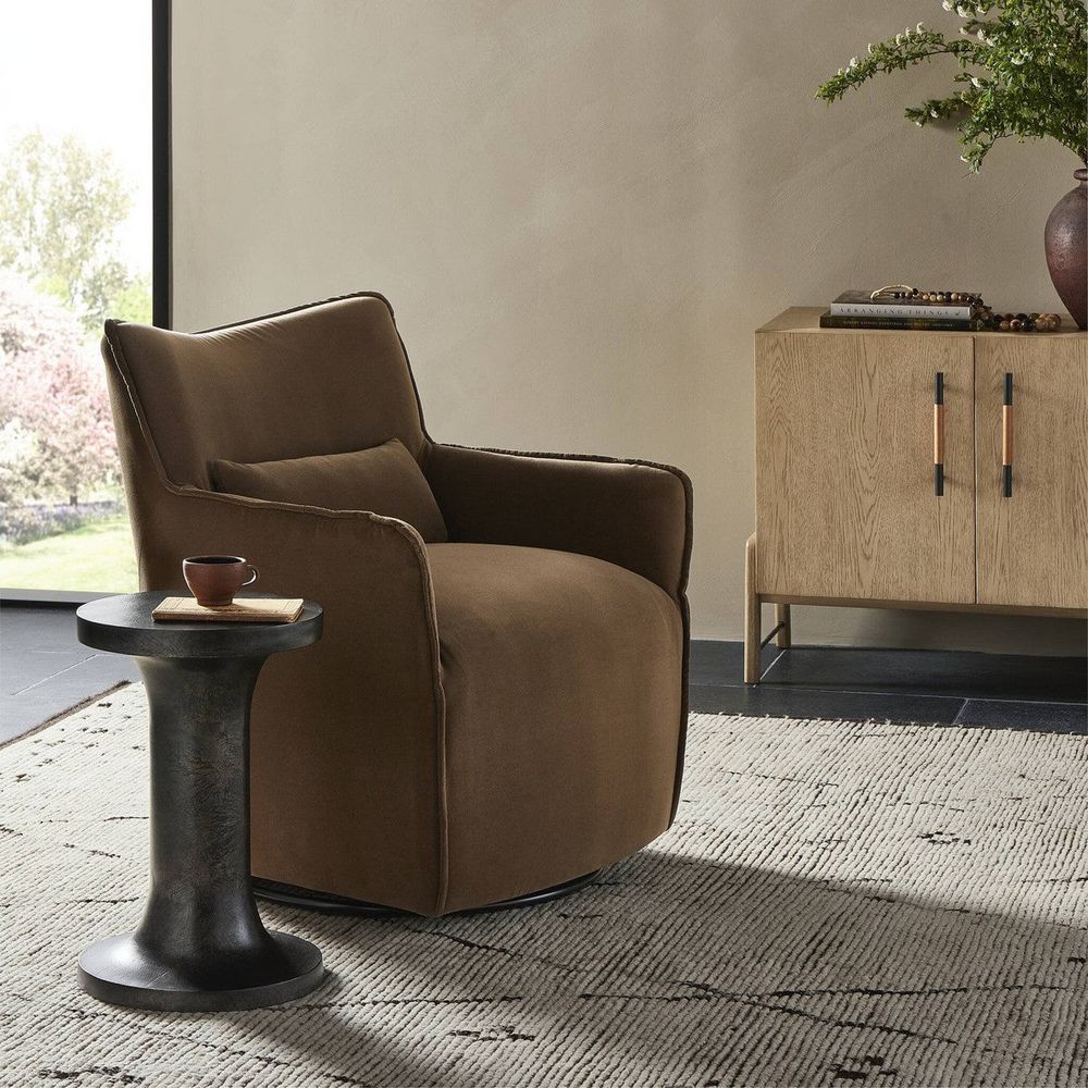 Description: With a tight, tailored sit and traditional barrel shape, flange seams soften the look of this comfortable seating style, with a 360-degree swivel for modernity.