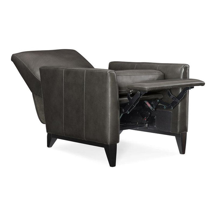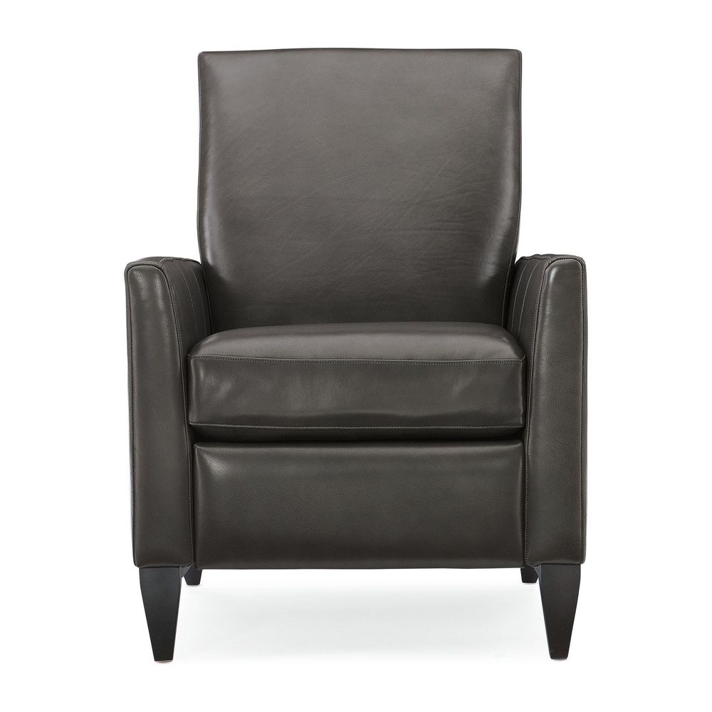 Who said recliners aren't stylish? This is reclining, reimagined. Lean On Me offers a simple, minimal silhouette in Almost Black leather that feels sleek and fashion-forward. Its clean lines and straightforward personality conceal a push-back recliner offering cradling comfort. For those who want to put their feet up by the fireplace but have the look of a stylish chair there's nothing finer.