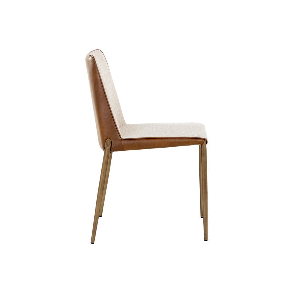 This modern, stackable dining chair offers a minimalist silhouette perfect for small urban settings. Features a comfortable seat in dillon stratus faux leather with a contrasting seat back in dillon black faux leather. Completed with powder coated steel legs in black. Also available in belfast heather grey with bravo metal and belfast oatmeal with bravo cognac. Handle With Care: This design has been crafted with faux leather. Faux leather is manufactured to reflect the natural characteristics of leather; as such, colour variations, markings wrinkles, grooves, and light scratches are appreciated characteristics. No two pieces will be alike. Visit our Product Care page for more information on how to ensure the lasting beauty of this piece.