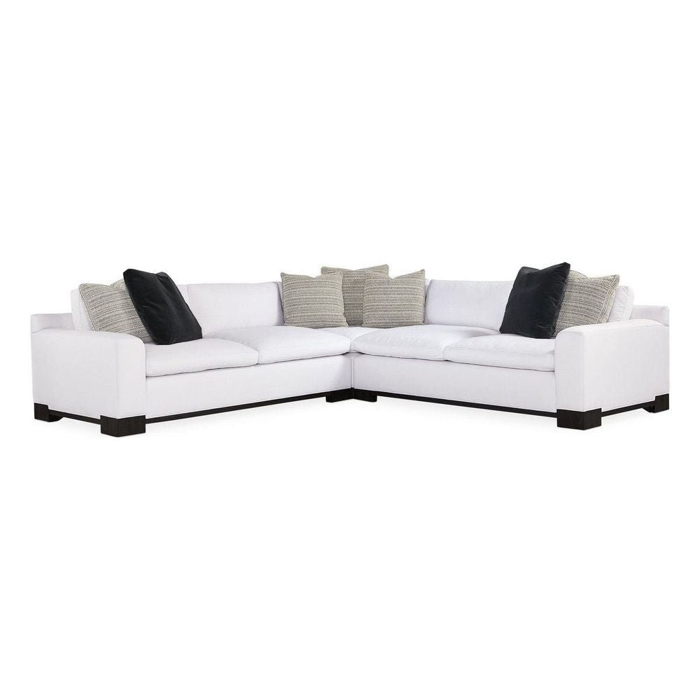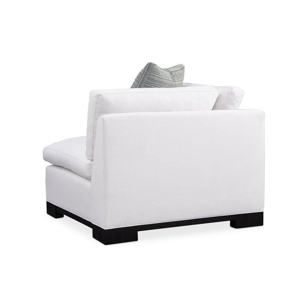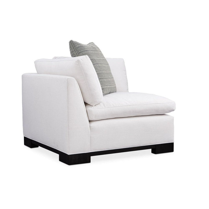 Designed for comfort and a crowd, everyone is a fan of the Refresh sectional. At once bold and timeless, its plush design illustrates the exceptional result of when fashion and comfort converge. Its refreshing styling is equally cozy and rewarding to relax into. Just sit back and you'll appreciate the surprisingly lush support of its low, deep design and thin, pillow-topped cushions filled with luxurious down-blend cushioning. A luxurious fabric cover and block feet finished in Midnight Terrain add a finishing touch. Designed to surround you in stylish comfort, this configurable seating option offers the perfect mix of form and function.