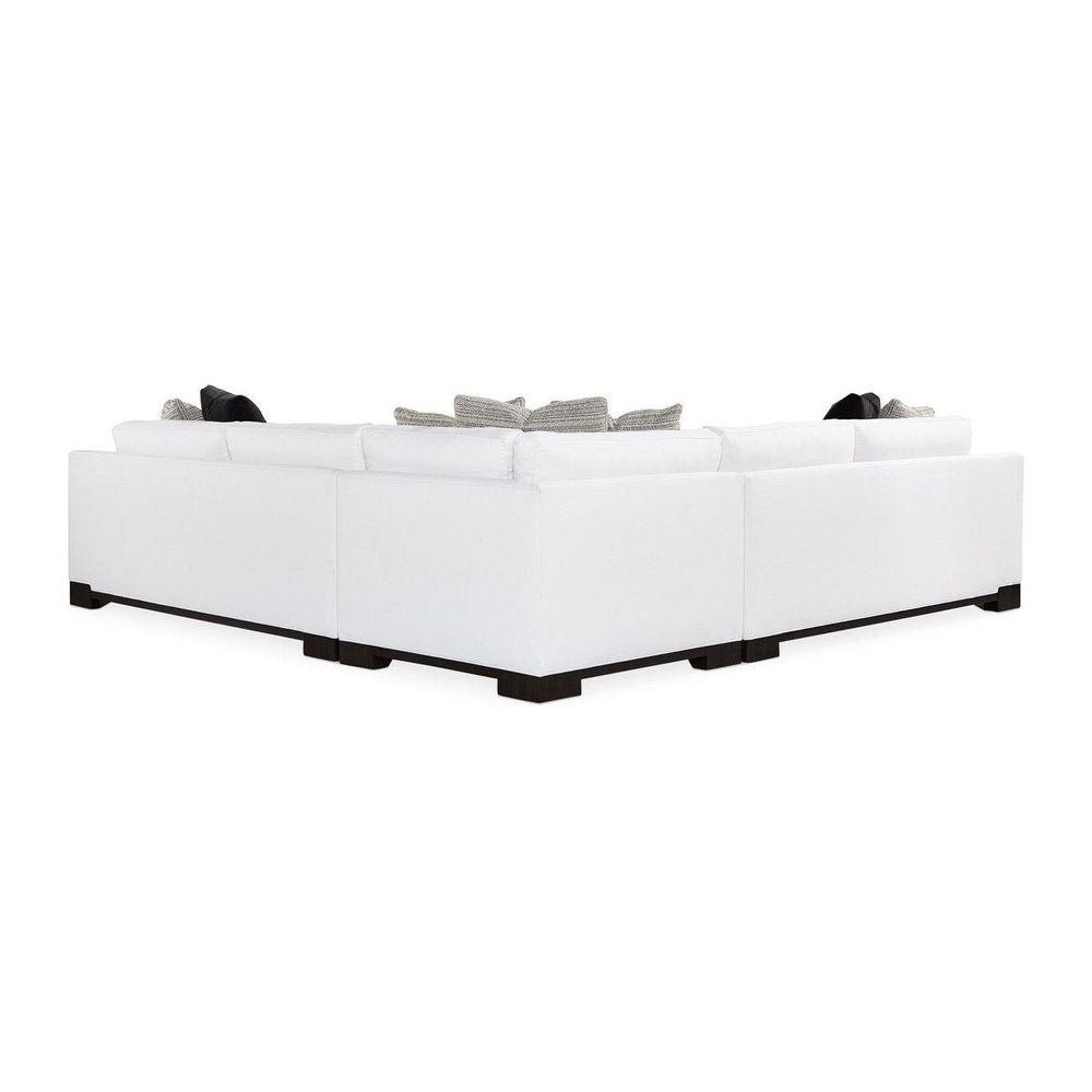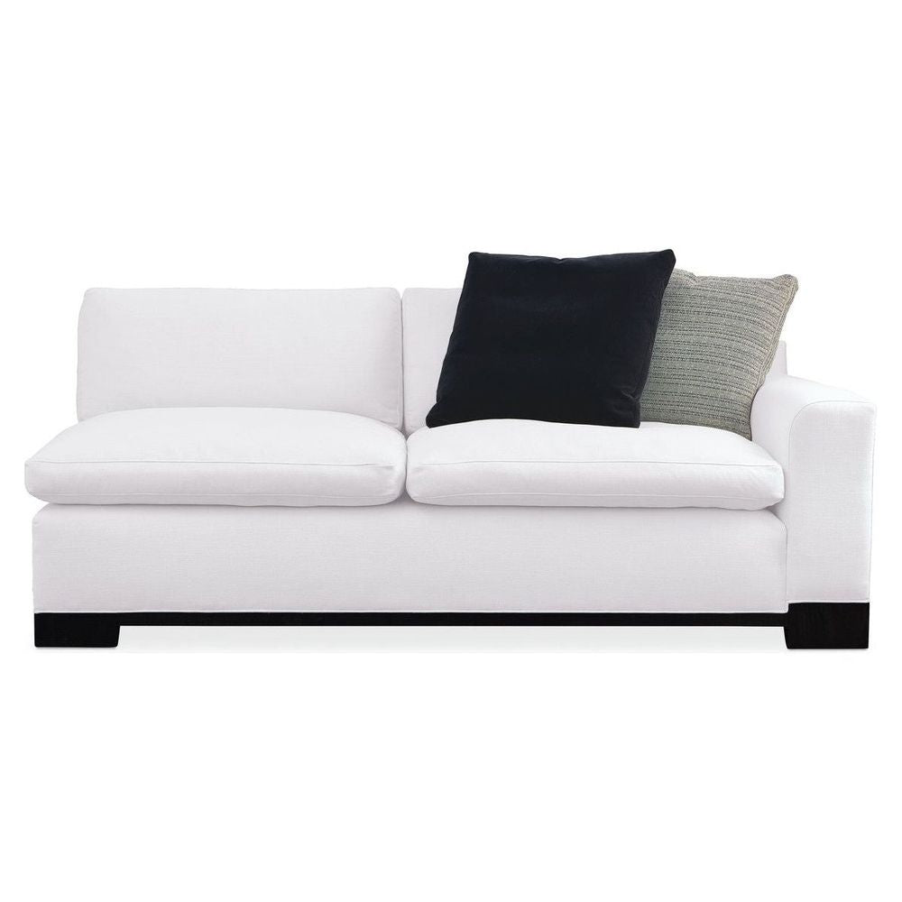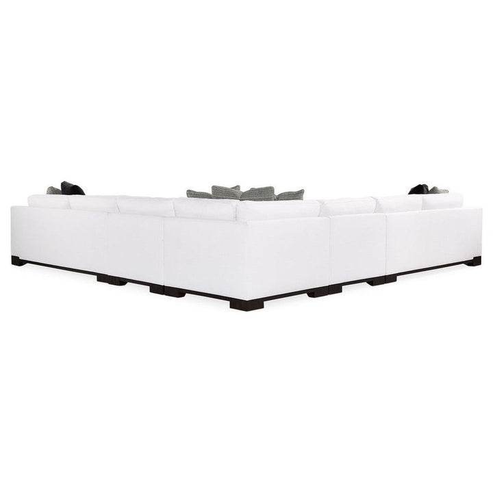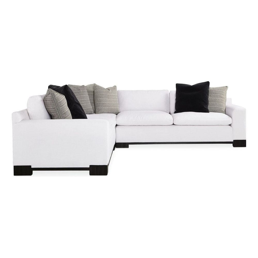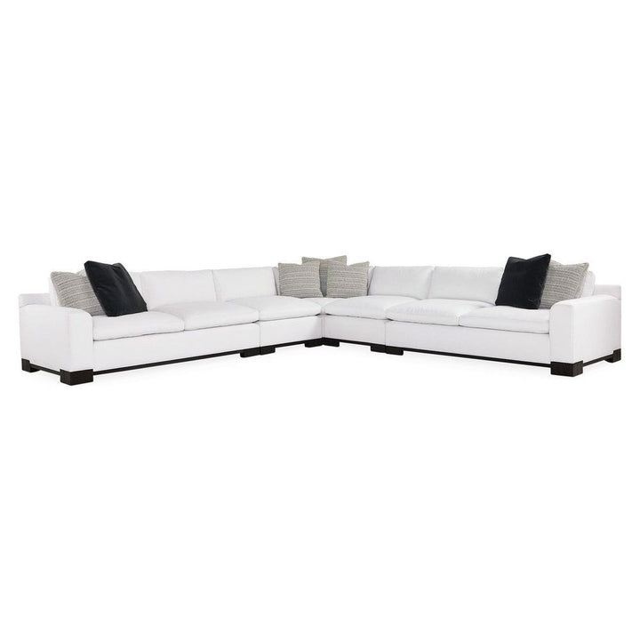 Designed for comfort and a crowd, everyone is a fan of the Refresh sectional. At once bold and timeless, its plush design illustrates the exceptional result of when fashion and comfort converge. Its refreshing styling is equally cozy and rewarding to relax into. Just sit back and you'll appreciate the surprisingly lush support of its low, deep design and thin, pillow-topped cushions filled with luxurious down-blend cushioning. A luxurious fabric cover and block feet finished in Black Stained Ash add a finishing touch. Designed to surround you in stylish comfort, this configurable seating option offers the perfect mix of form and function.