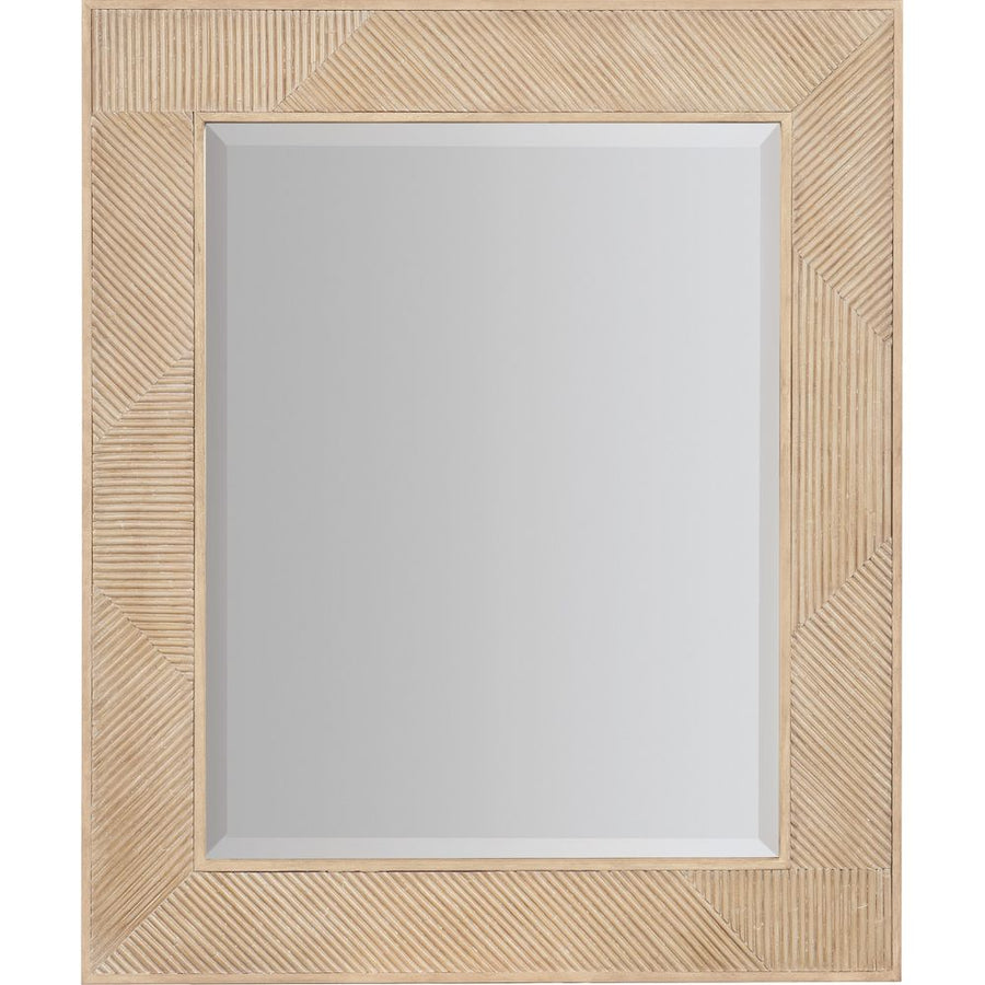 Description: Tactile and textured, the tropical retreat-inspired Retreat Landscape Beveled Mirror is framed with carved resin in a reeded design. The mirror is finished in the sand-colored Dune, transparent by design to showcase the unique grain patterns of the wood veneers. In a rectangle shape, the mirror can hang either horizontally or vertically.