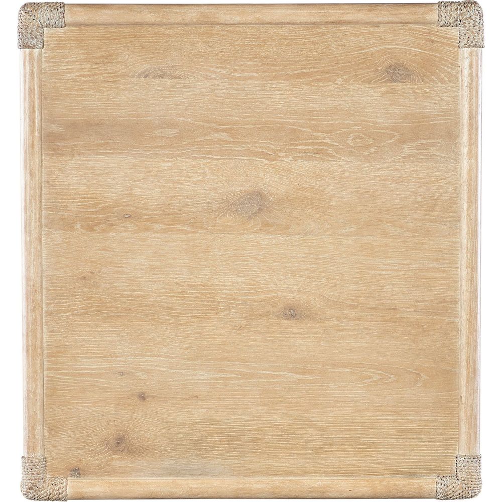 Description: Inspired by tropical getaways, the Retreat Pole Rattan End Table is a mixture of natural materials in a laid-back, versatile design. Crafted of Oak and Maple Veneers with Rope accents at the joints, the table is finished in the sand-colored Dune, transparent by design to showcase the unique grain patterns of the wood veneer. Finished on all sides, the table has one self-closing drawer, one fixed shelf and is accented by soft pewter-colored "T" pulls.