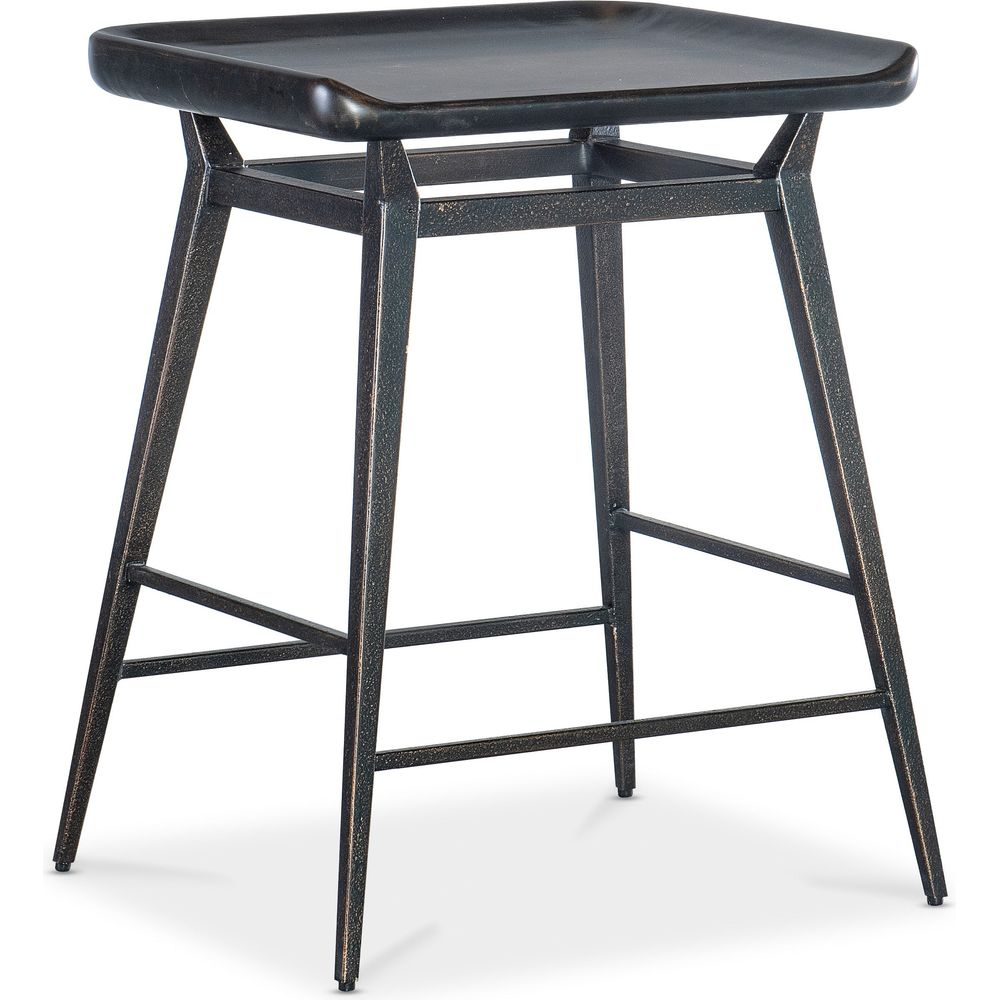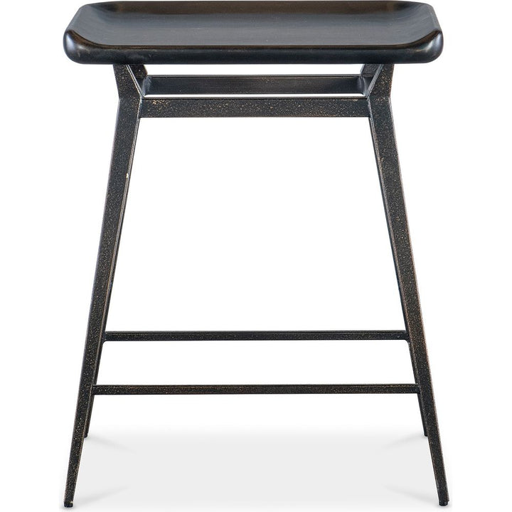 Description: Industrial, chic and Zen, the two-tone Retreat Stool combines a light wood seat with a black metal base, stretchers and footrest. The scooped seat is crafted of wood finished in the Black Sand finish, transparent by design to reveal the unique grain pattern of the wood veneer.