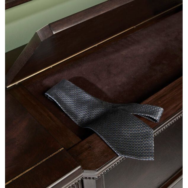 Description: With nine spacious drawers, the Revival Dresser provides ample storage space for all your clothing, accessories, and personal belongings. The top center drawer features a felt bottom lining, while the bottom drawers boast cedar lining, ensuring your items are stored safely and securely. Designed with practicality in mind, it features a hidden storage compartment with a felt bottom lining under the flip top. Perfect for storing valuables or treasured items, this compartment offers both security and convenience. The silhouette of this dresser features canted corners and wrap-around moldings, enhancing the traditional charm and elegance.