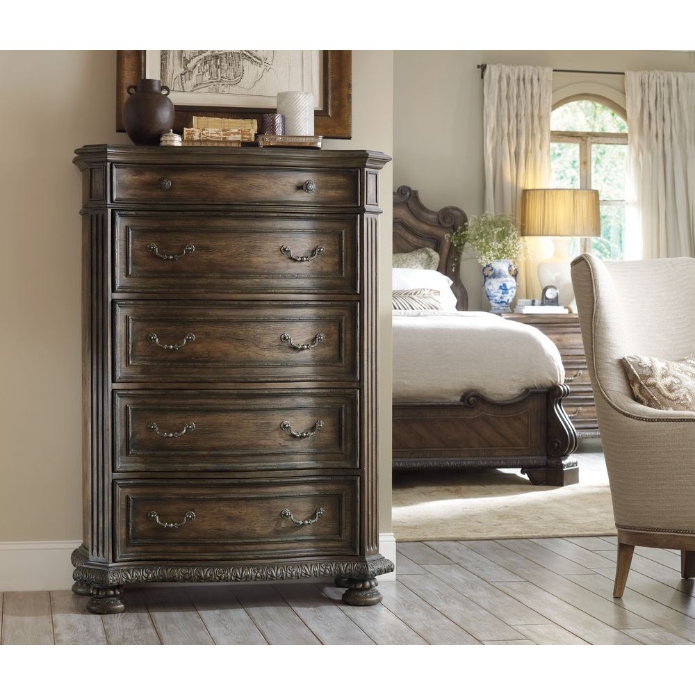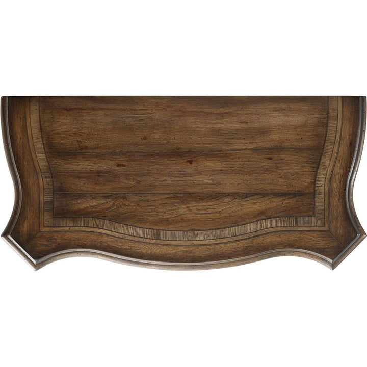 The groundbreaking Rhapsody Collection brings together classic design elements, grand scale, and a relaxed rustic finish to create an impassioned marriage of casual opulence. Exuberant scale and serpentine shapes infuse the pieces with emotion, while timeless motifs like scrolls, rope twist molding, the acanthus leaf and fleur de lis anchor Rhapsody in old world charm. Building on the grand scale and classic European design is the defining element of the collection: a walnut-colored finish inspired by the natural yet rustic nature of reclaimed woods in beautiful patinas.