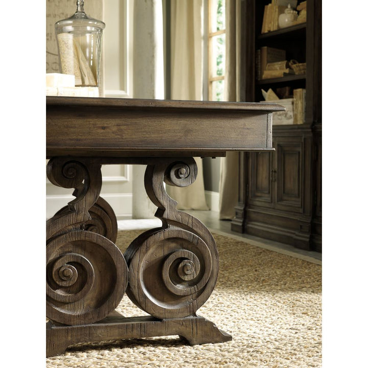 The groundbreaking Rhapsody Collection brings together classic design elements, grand scale, and a relaxed rustic finish to create an impassioned marriage of casual opulence. Exuberant scale and serpentine shapes infuse the pieces with emotion, while timeless motifs like scrolls, rope twist molding, the acanthus leaf and fleur de lis anchor Rhapsody in old world charm. Building on the grand scale and classic European design is the defining element of the collection: a walnut-colored finish inspired by the natural yet rustic nature of reclaimed woods in beautiful patinas.