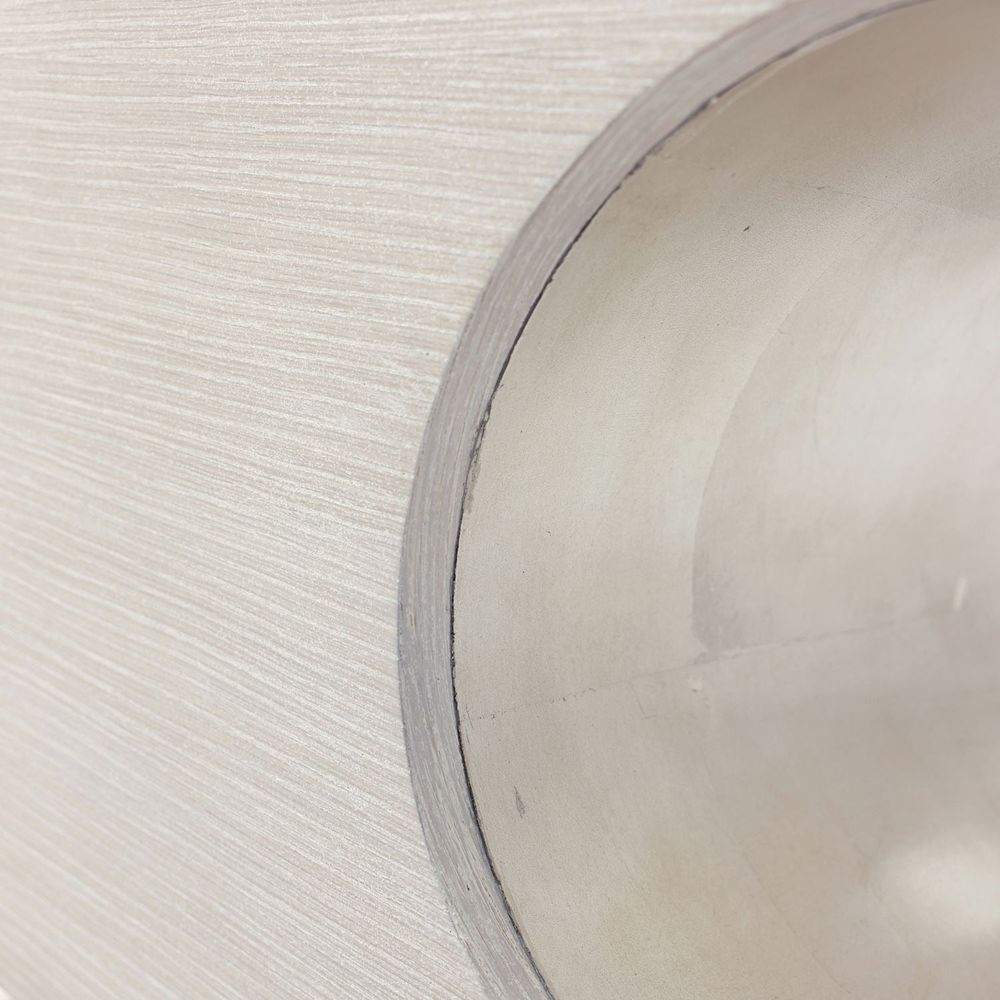 The Rhythm Cocktail Table showcases a masterful use of negative space to create a dynamic, open atmosphere in any decor. Crafted from beech and oak wood, the piece displays a White Washed Oak finish to showcase stunning straight grain patterns covering the exterior. Pristine white tones pair beautifully with the Champagne Silver finish adorning the hollowed interior. This beautiful statement piece has been equipped with brass casters for ease of use.