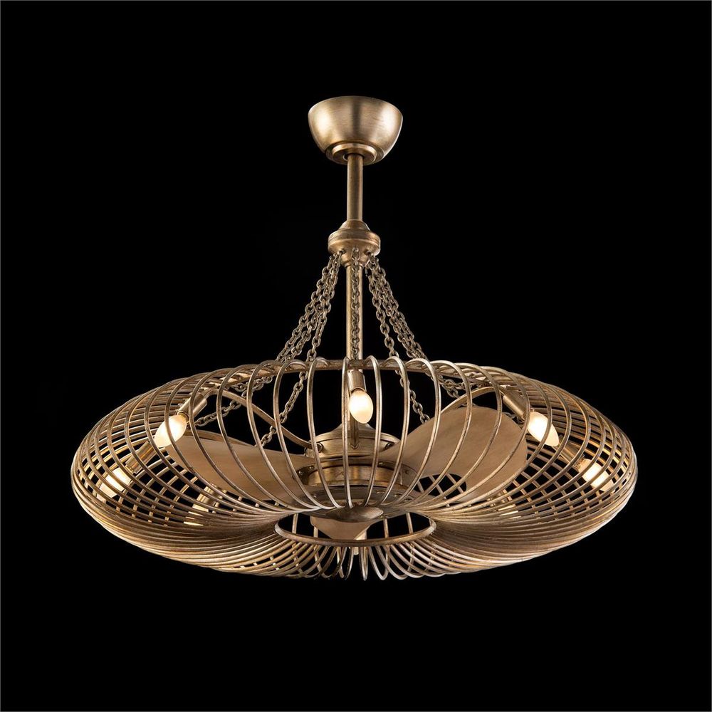 Description: Arlette of gold encase this eight-light pendant with a remote-controlled fan.
