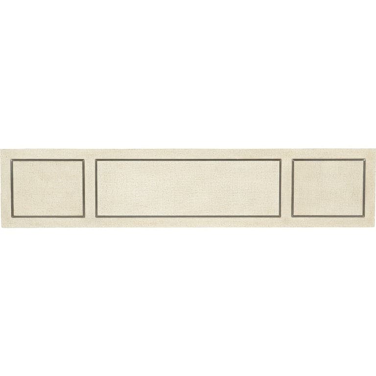 - Finish: Whites/Creams/Beiges, Pebble Beach: lacquered burlap finish. Champagne colored metal inlay around top, middle shelf and bottom shelf.