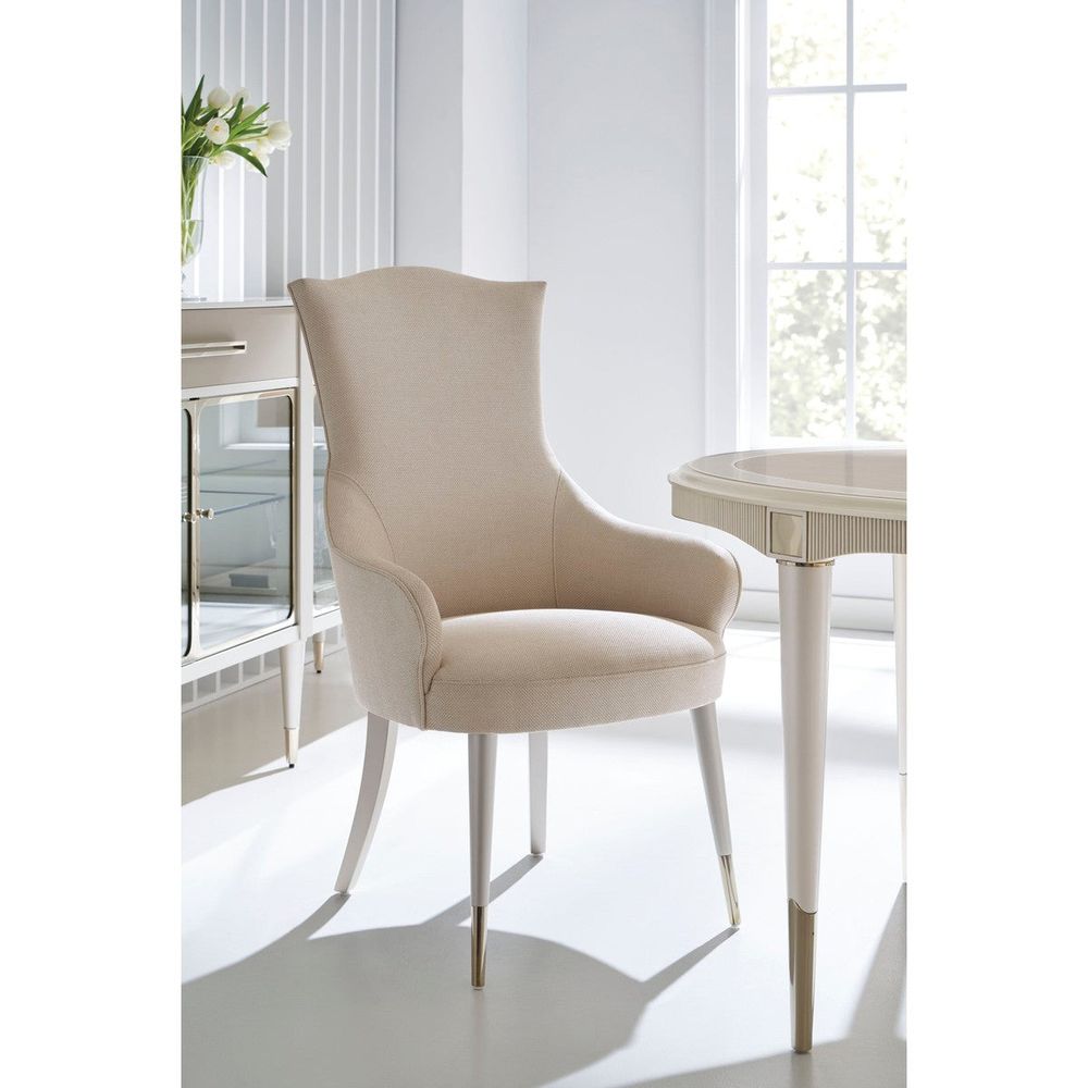 This streamlined cabinet introduces a modern-yet-elegant silhouette, crafted in Birch wood with reeded details and a Matte Pearl finish. Vinyl-wrapped door fronts with linear hardware lend a contemporary element, complemented by glass doors framed in a Whisper of Gold. Its lit interior offers generous storage with adjustable glass shelves and a touch dimmer switch. Beautifully blends in with entryways, living and dining interiors.