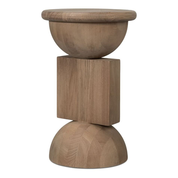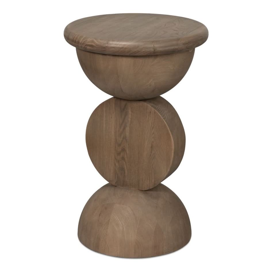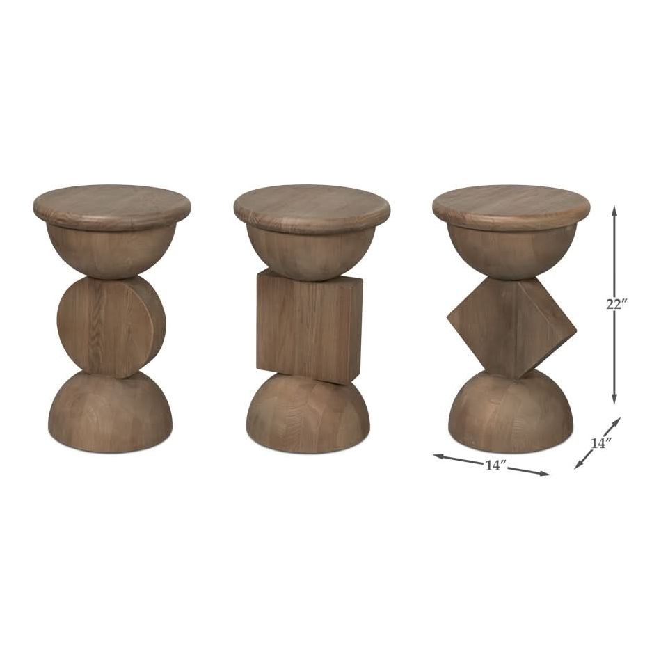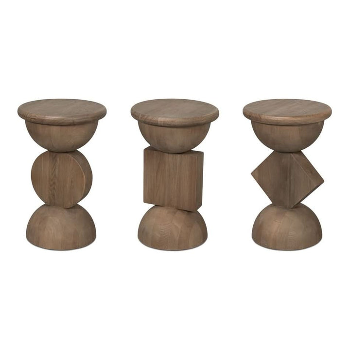 The Romeo tables. Set of 3 reclaimed elm in a light natural wash offers an organic texture. Ideal for displaying lamps, plants, or creating a layered side table look in rustic spaces.