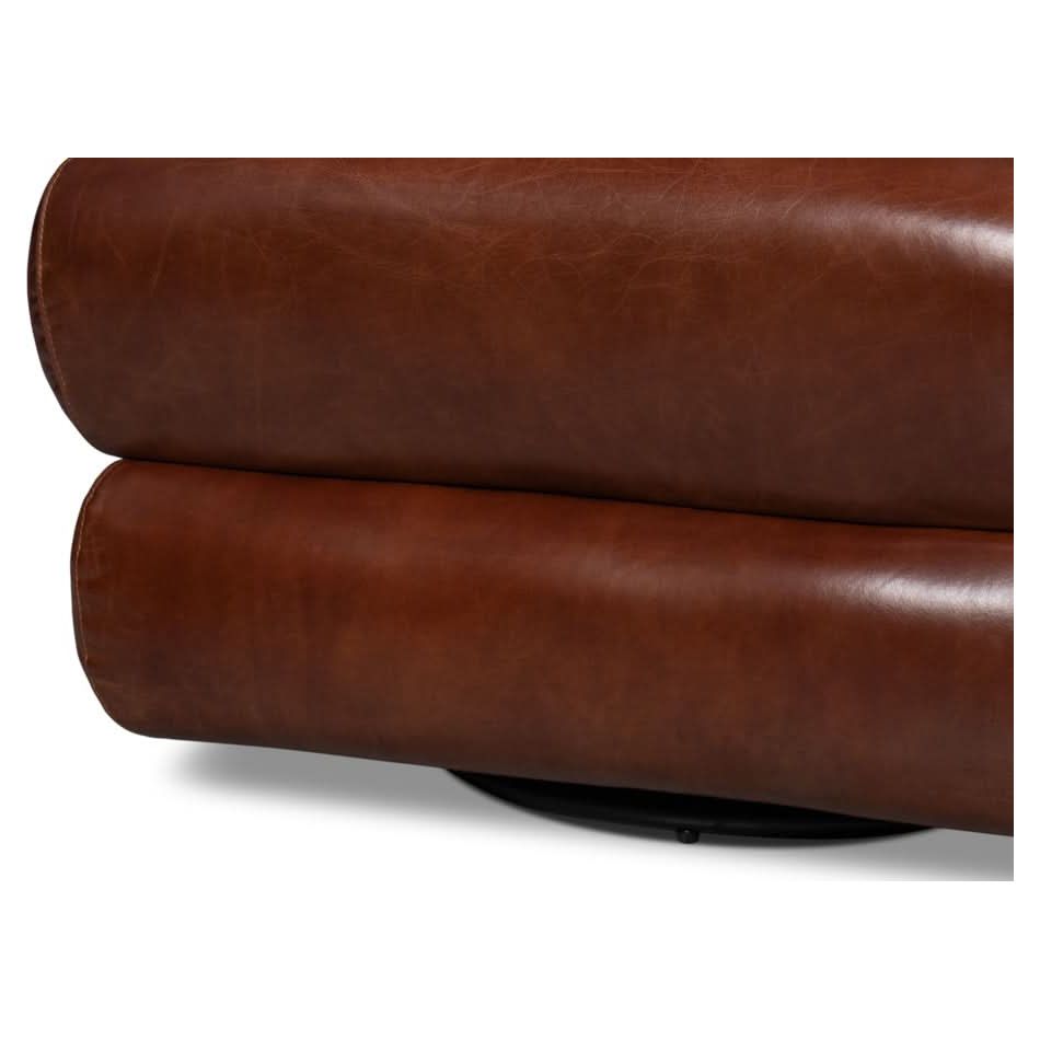 Experience contemporary sophistication with Rondo's Leather and Swivel Base. Its sleek design marries comfort with style, inviting you to spin tales of romance in every modern twist, where every moment is an embrace of elegance.