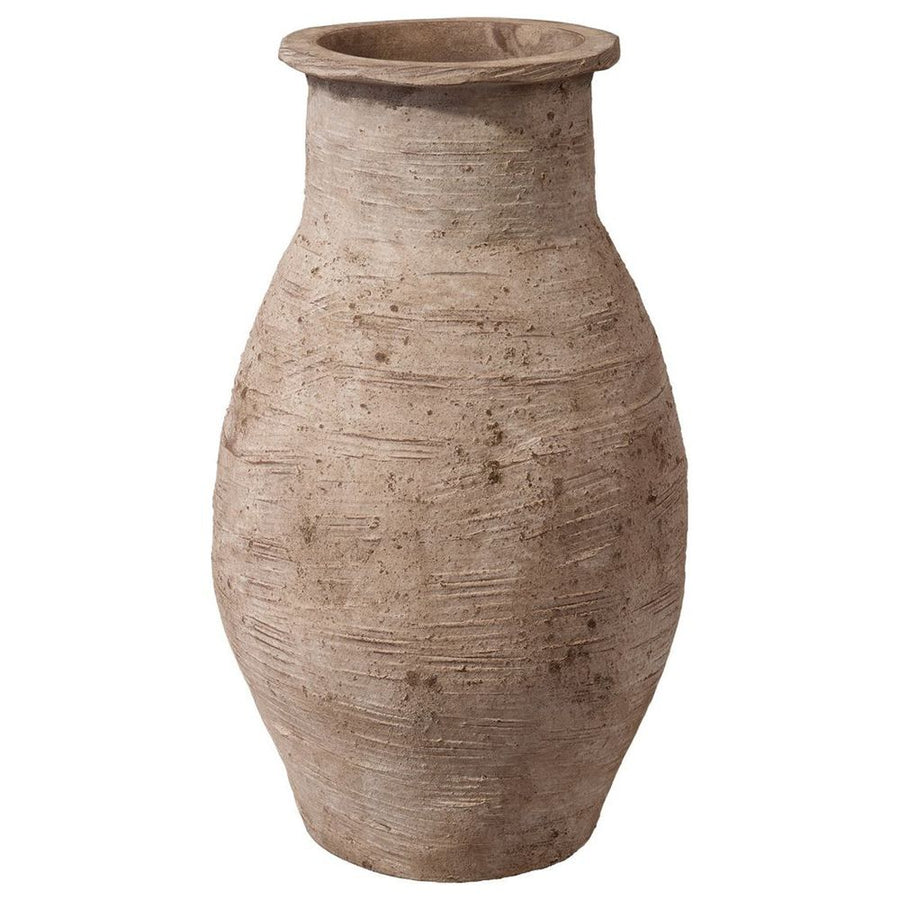 The silhouette of this decorative vase is traditional, but the handcrafted details give the vase a personality of its own. The hazelnut ceramic is shaped by hand and given a weathered surface effect to create an antique texture and form. Its unrefined shape and earthy color palette will bring a warmth to your existing decor. Each vase is a one-of-a-kind piece of art. As such, their exact shape, color, and finish will vary slightly.