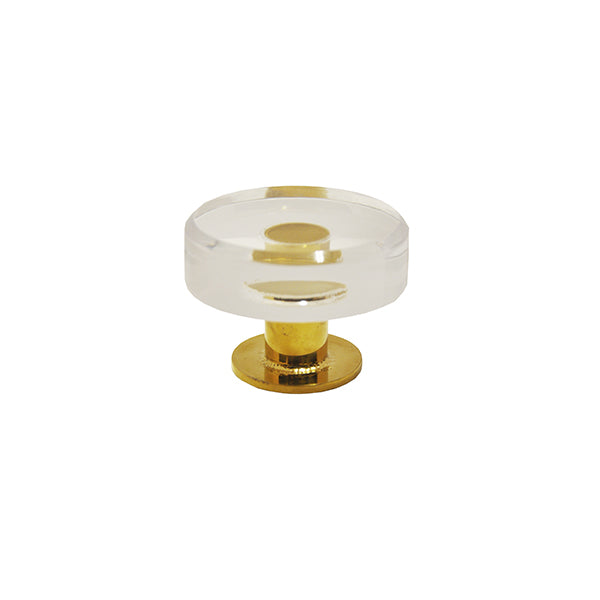 Description: MODERN ROUND ACRYLIC AND BRASS KNOB 1.87" H X 2.5" DIA Finish Sample Code: M01BR
