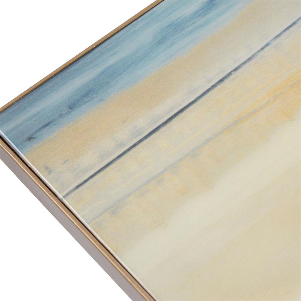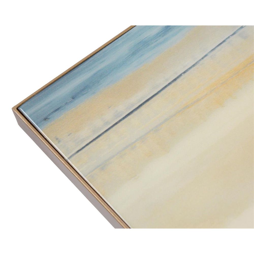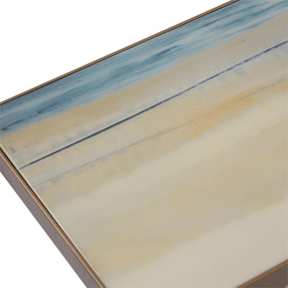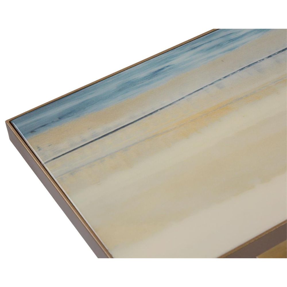 Description: The Concord image by artist Rowan A. James has been applied to the top and bottom tiers of this sofa table and covered in a hand-applied vitreous finish. The frame and legs are in a hand-finished gold.
