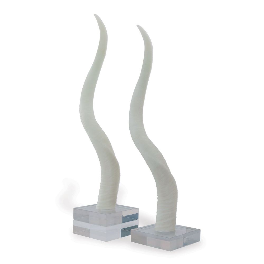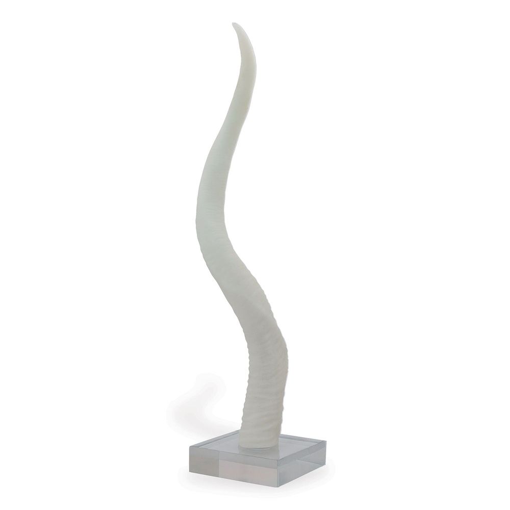 Sculptural and organic, our Safari horn sculpture is a dramatic textural horn attached toa thick lucite base. Sold as a single sculpture, but a statement when shown as a pair.The horn is made from polystone in a frosted color.