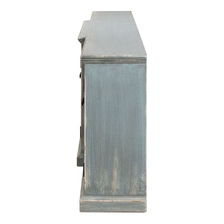 Grand in scale, unmatched storage and functionality San Marco is the credenza singularly designed to make your room unforgettable. Providing six doors, two drawers and eight shelves there is no limit to the possibilities. It"s blue grey exterior tone combined with a white interior offer a visual reference to the sea, crashing waves and simpler days.