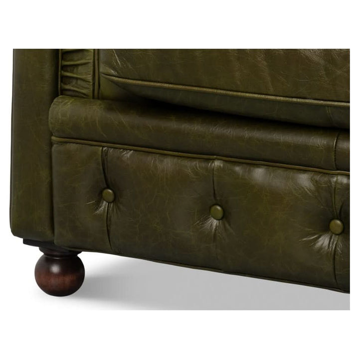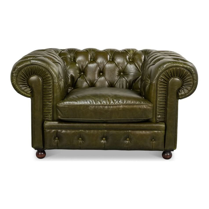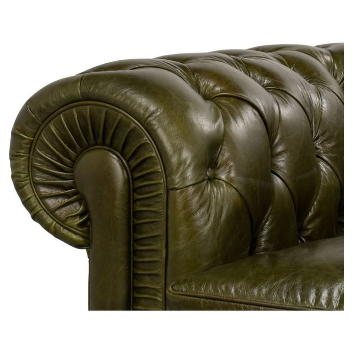 Experience the epitome of Edwardian England with out rolled arm Chesterfield chair, crafted in top grain leather and adorned with pleated armrest, evoking timeless sophistication and comfort in every detail. This classic piece seamlessly merges the grandeur of tradition with the allure of contemporary luxury, a testament to the enduring charm of British craftsmanship.