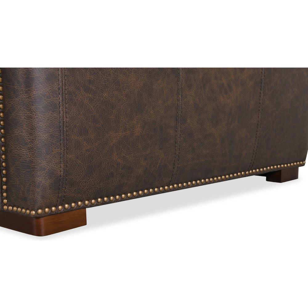Features: Power recline at each end seat and one armless seat; Power headrest on all seats; Seamless blend of sophistication and versatility; Classic chesterfield tufting with copper toned accent nail trim; Patented design with a timeless allure; Discreetly concealed synchronized power recline function; Leather is thoughtfully crafted to deliver a rich deep-brown hue with slightly brighter undertones that are revealed through the wax-break fissures, exuding authenticity and charm