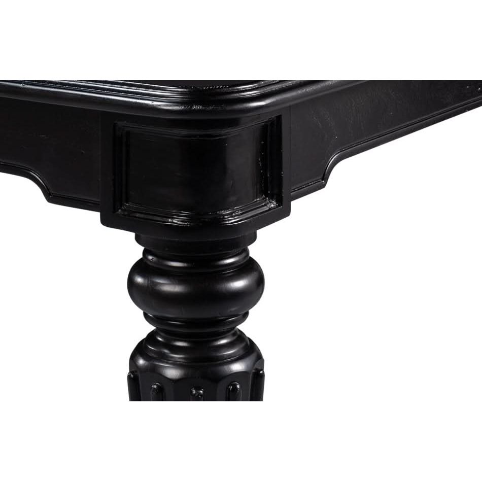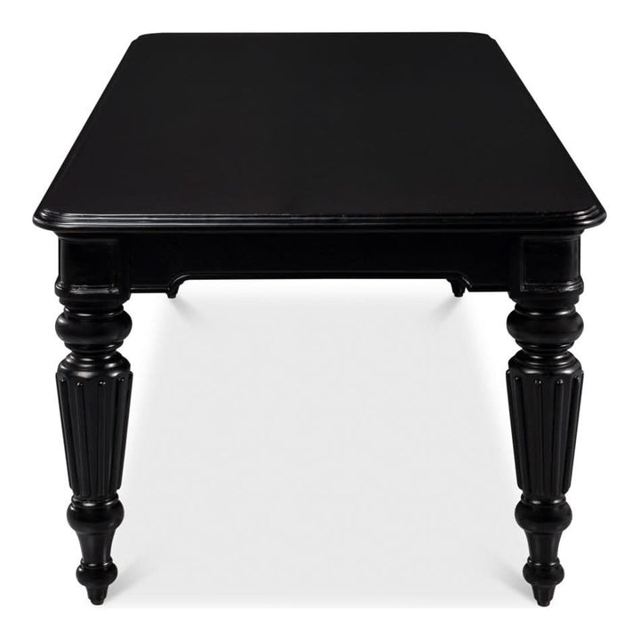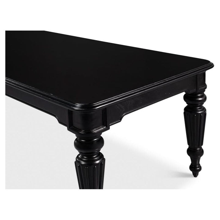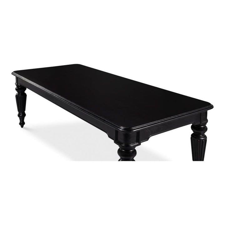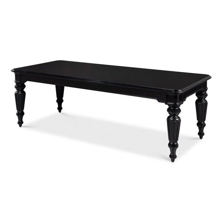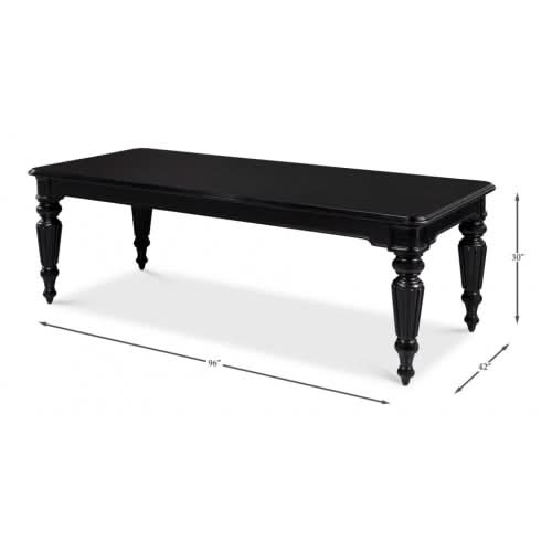 Introducing "SCARLETT,"a captivating addition that blends style and tradition seamslessly.Featuring turned legs,spacious seating,and a luxurious deep black finish,Scarlett shines as the star of your dining room.