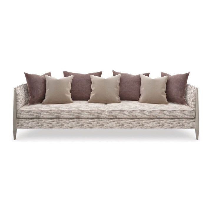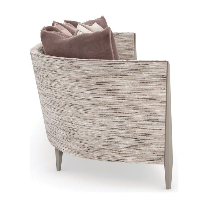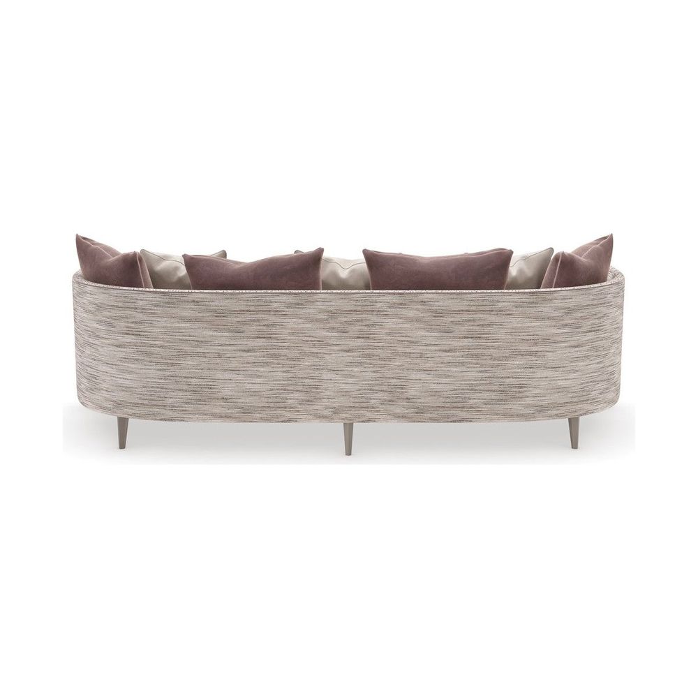 An iconic silhouette is reimagined in a menswear-inspired, tactile fabric for a statement-making sofa that's chic and sophisticated. Clean lines and curves with a smooth upholstered back define this classic style, accentuated by contrast piping along the frame and seat cushions. Fluted tapered legs in Soft Silver paint add a hint of glamour, complemented by down toss pillows in a lush velvet colorstory.