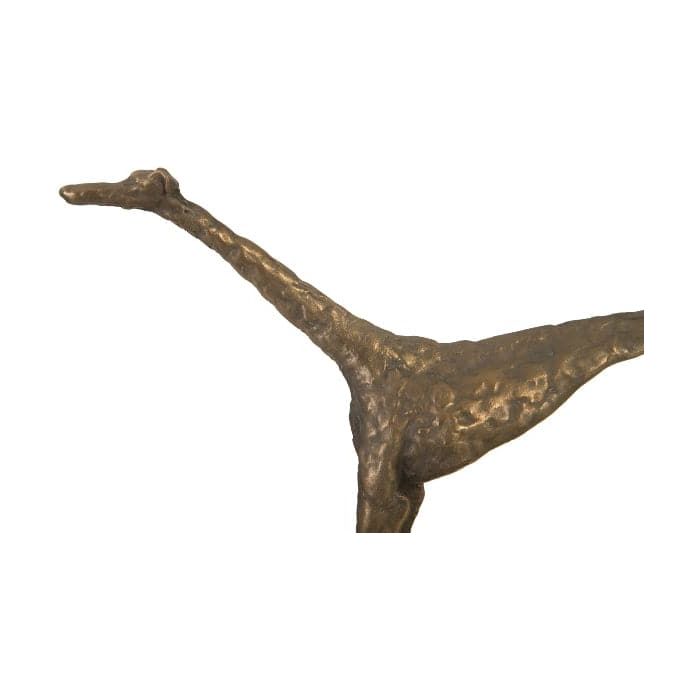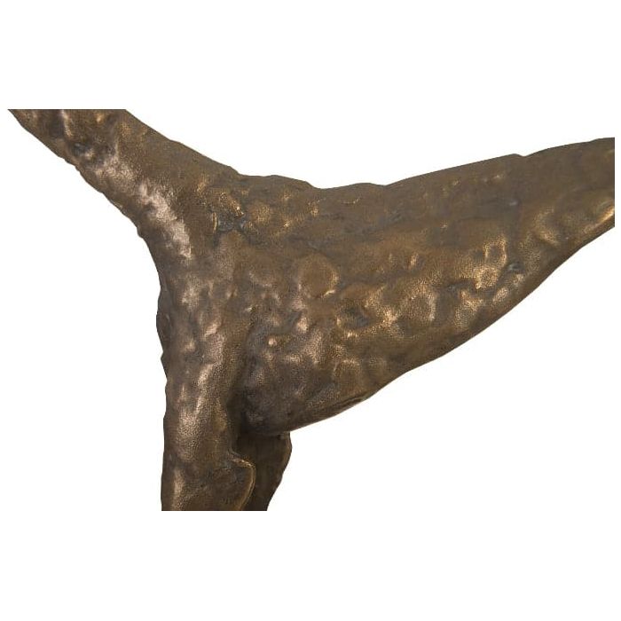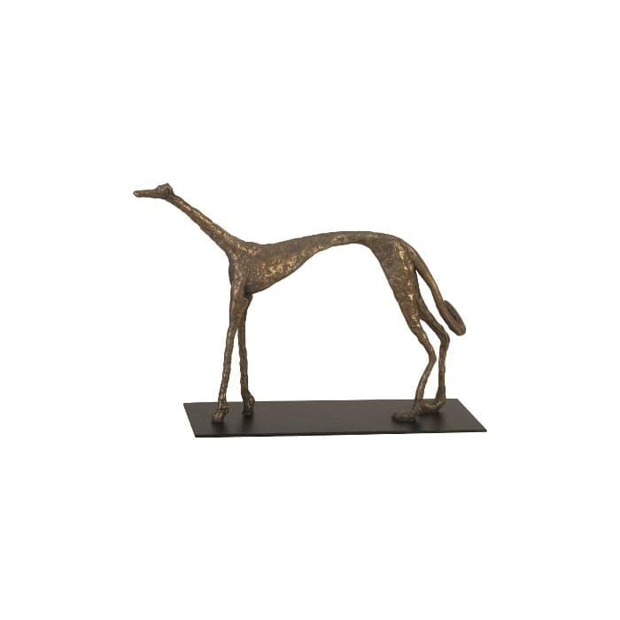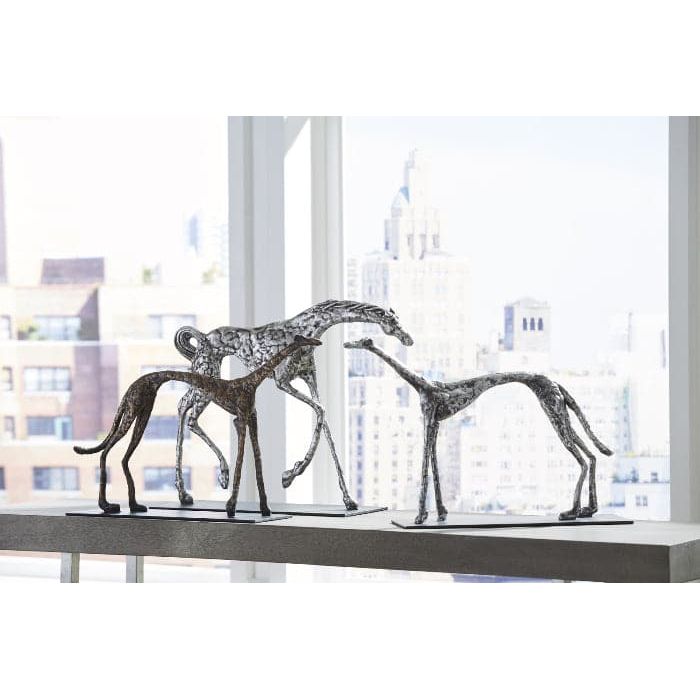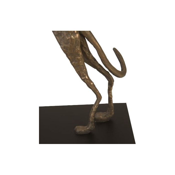 Charming tabletop sculpture cast in resin and finished with real bronze powder. Textured to give the feeling of metal without the price tag. This sculpture comes on a black metal base.