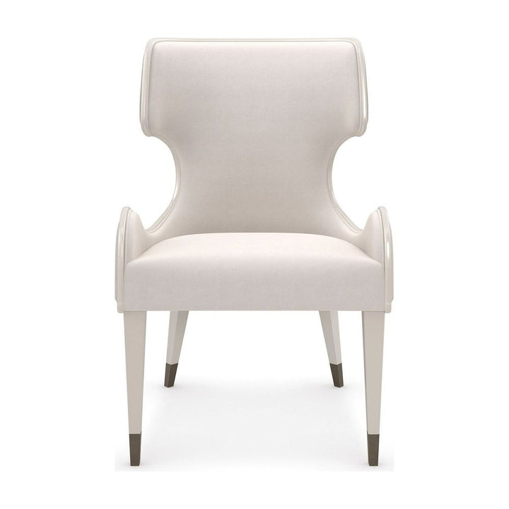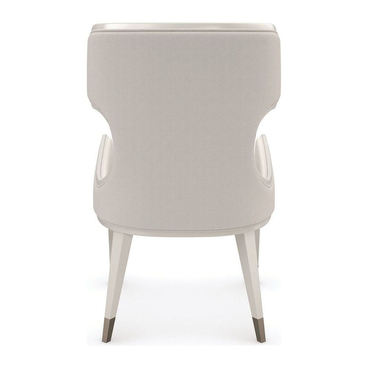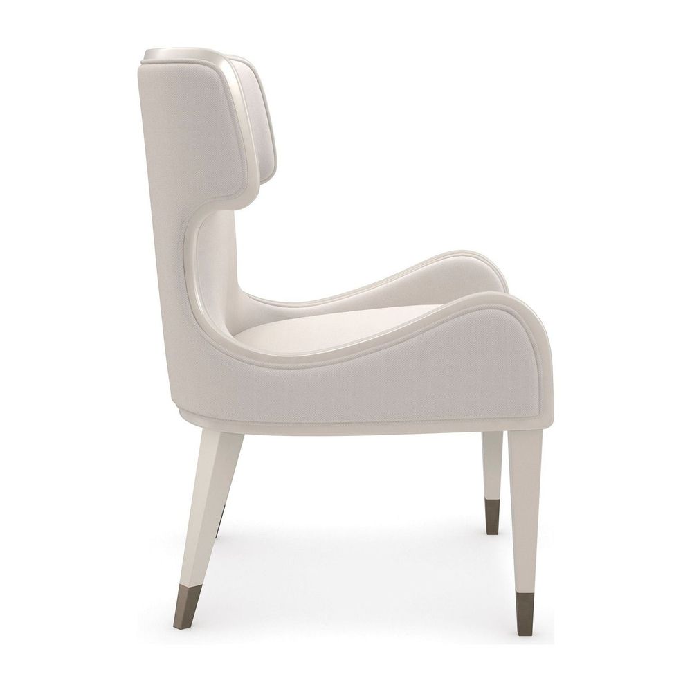 Features: Upholstered chair.Legs in Matte Pearl.Metal ferrules in Golden Shimmer.