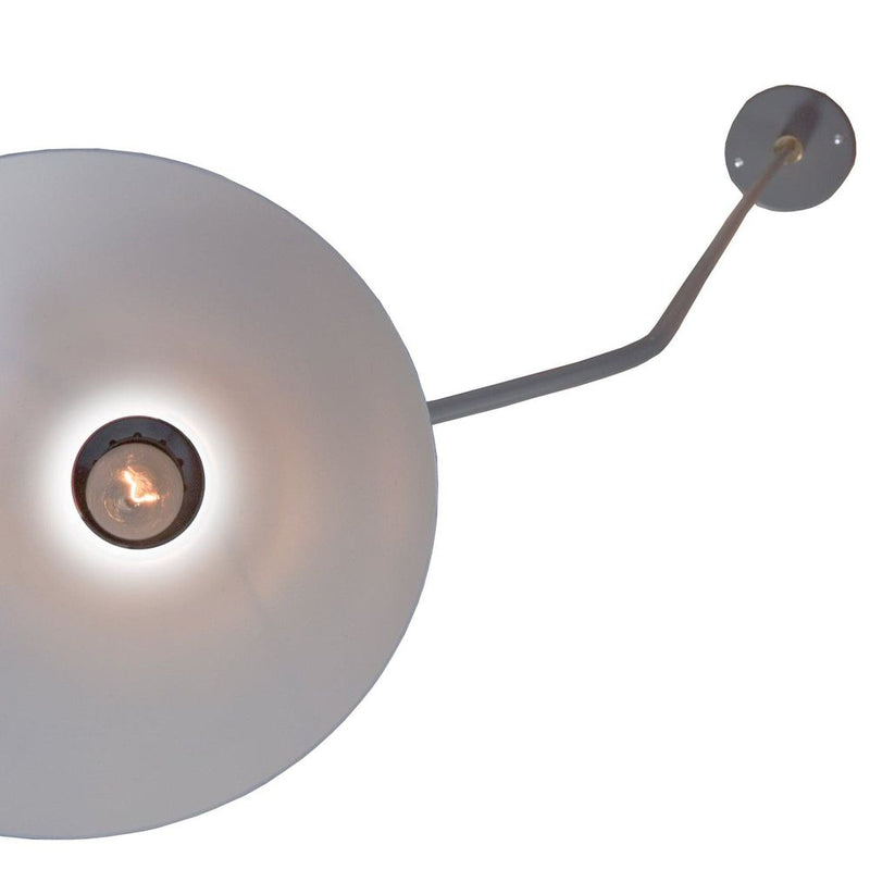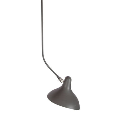 Inspired by mid-century modern designs and Alexander Calder's mobiles, this ceiling lamp is an ideal choice for modern decors. Slender and graceful this lamp features an adjustable pivot at the ceiling and an adjustable shade that allows you to easily direct light wherever you need it most. The white finish inside the shade reflects the light emitted by one 60 watt candelabra bulb. Available in black, white, or gray.