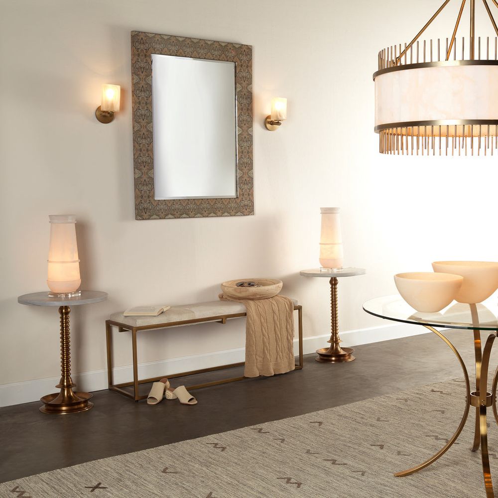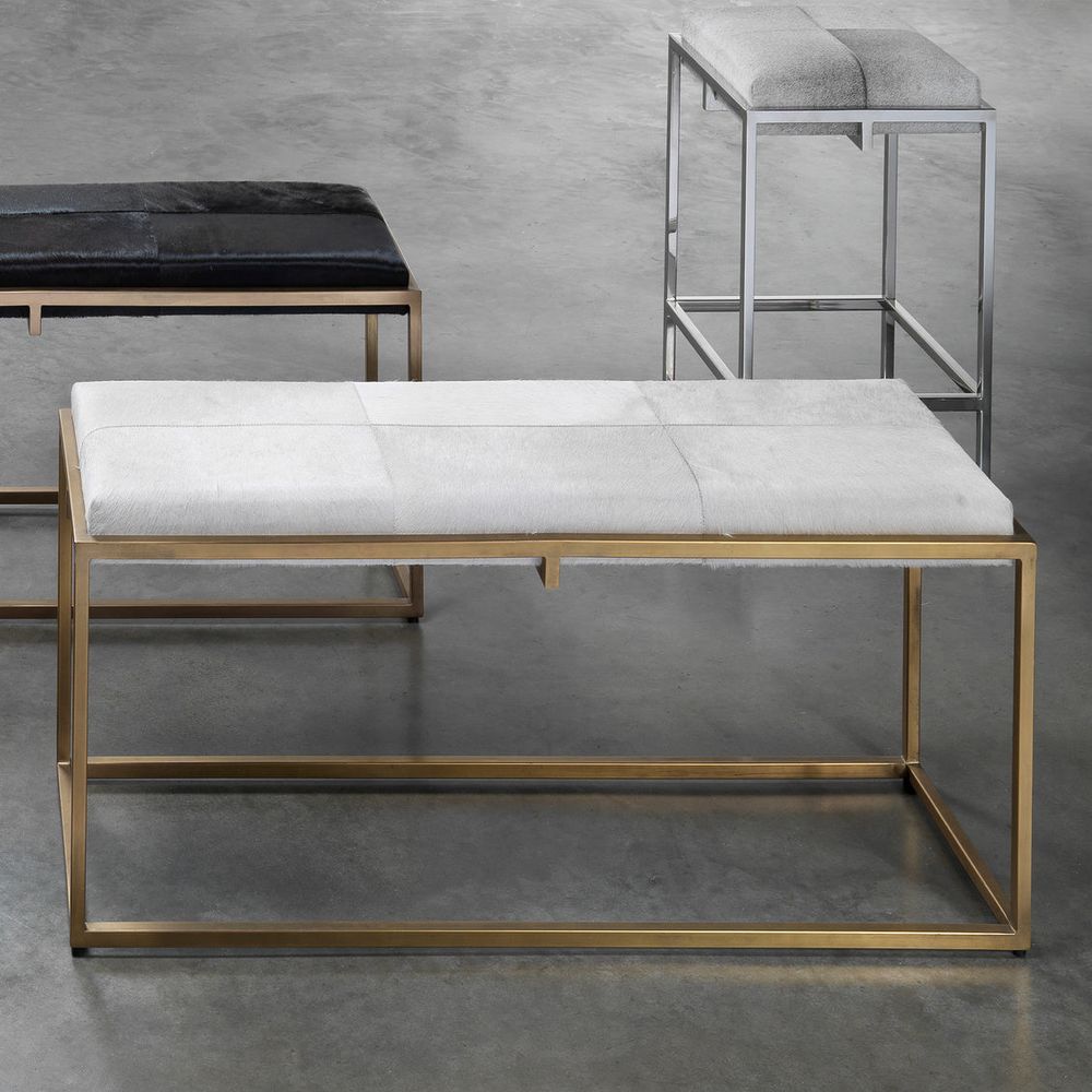 A buttery soft leather seat and a sleek, architectural metal frame come together in the art-deco-inspired Shelby bench. Featuring hand-forged legs and is topped with a padded seat for extra comfort. The high-contrast materials make for a striking accent pulled up to a dining table, welcoming entryway, or at the foot of your bed.