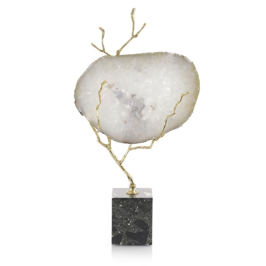 Solis Agate Held In Brass Branch - White - Marble