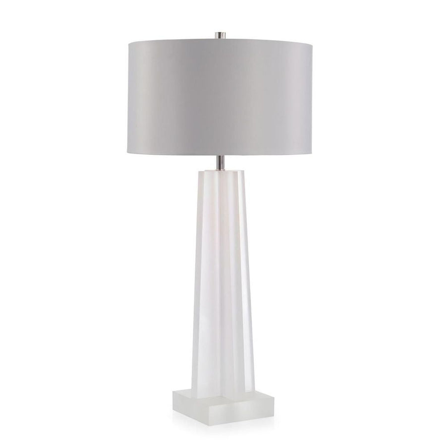 Description: Intersecting columns of frosted crystal make up this table lamp.