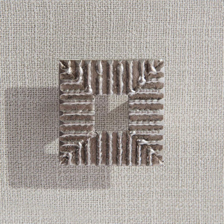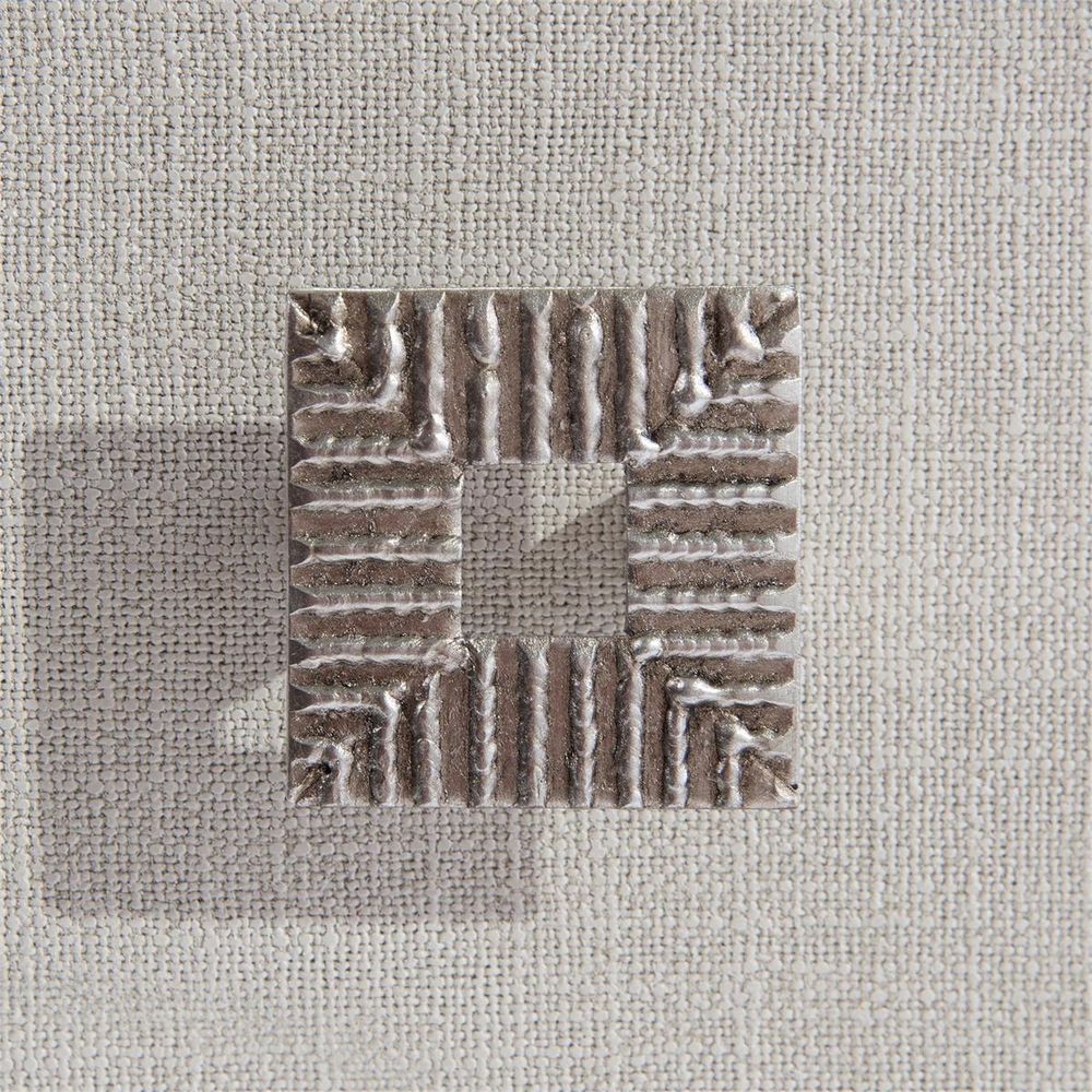 Description: Fitted with soft-closing drawer runners, the linen-faced drawer fronts have silvered pulls with a drip relief pattern. The grey oak case is raised on an oak stool. The linen can be cleaned with a white cloth and water.