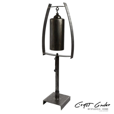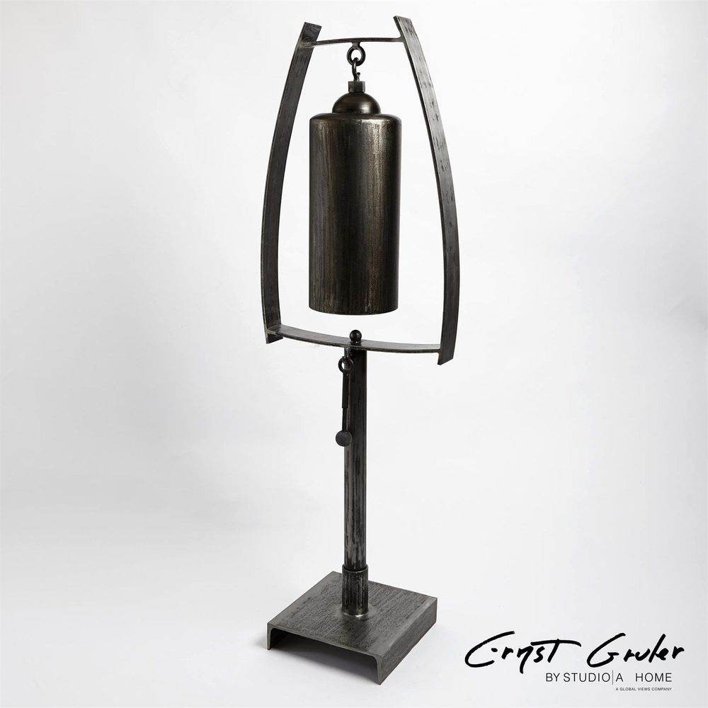 Ernst Gruler's original Sound Sculptures were made from repurposed scrap steel and pressure canisters, with a liberal sprinkling of industrial chic, and the technical and aesthetic attention to detail that informs all of Ernst's work. The bells are meant to be rung, and in many cases other parts of the sculptures also resonate when struck. This is why he calls them Sound Sculptures: they invite exploration and interaction, along with the contemplation of the origin and previous functions of the various scrap components of the sculptures. Studio A Home has reproduced Ernst's original Sound Sculptures from iron. They exactly reflect the component parts of his originals. Available in three styles.
