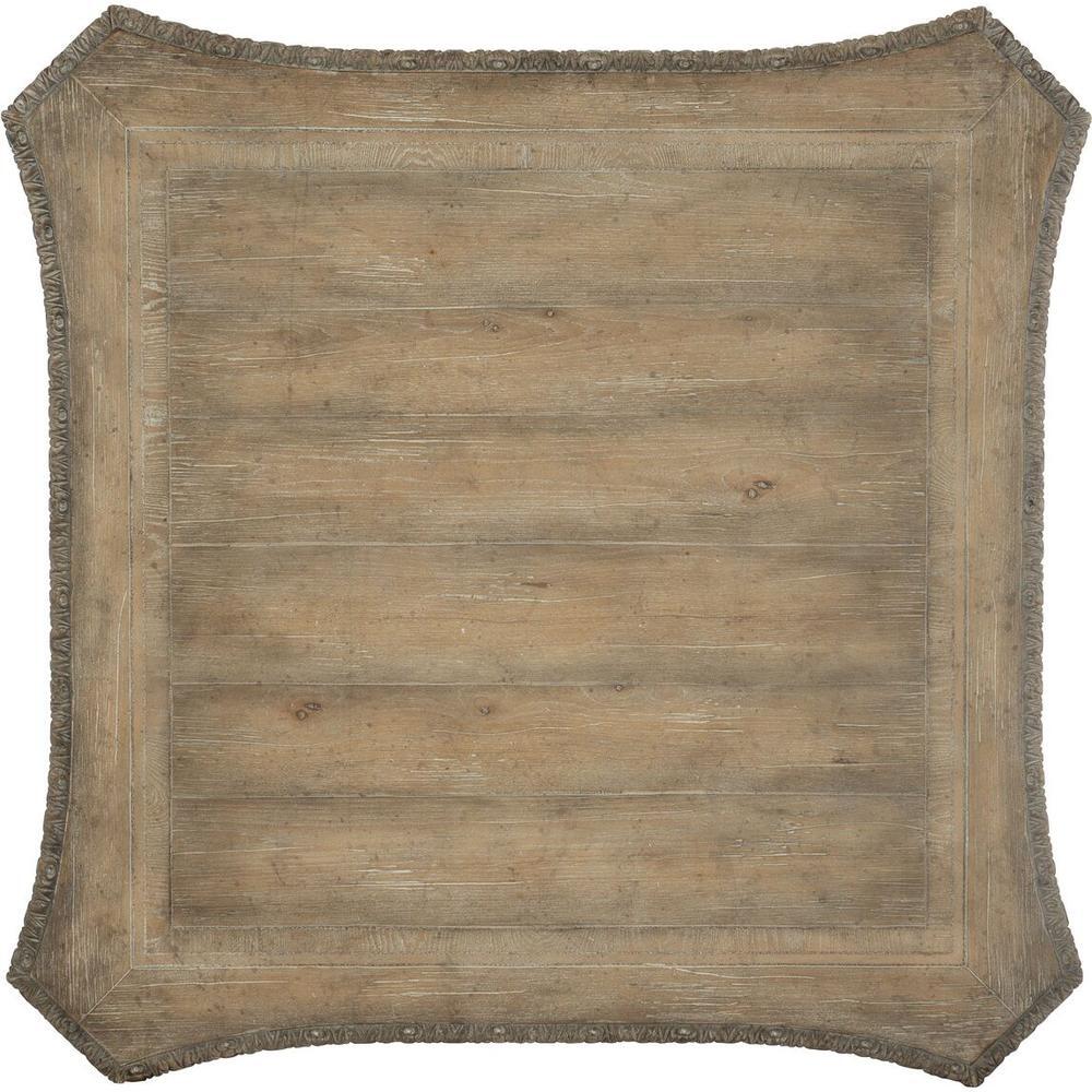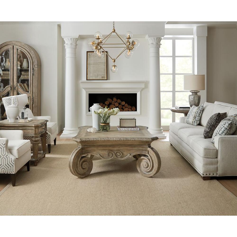 Castella's over-the-top (and fabulous) cocktail table is punctuated by generously scaled scroll legs and a beautifully carved apron. And it has a grand presence at nearly 40 inches square - it will draw your eye to the seating area and be a dramatic surface for accessories and storage. The refined rustic Antique Slate finish projects laid-back luxury. Commanding attention in any space, the impressive scaling of the Castella Collection combines with classic design elements including scrolls, serpentine shapes, rope twist molding, acanthus leaf details and fleur-de-lis accents to create old world charm. Infused with emotion, the collection's exuberant scale and timeless motifs define its casually opulent style. Presented in an updated mid-tone brown finish with a beautiful patina, Castella offers Classic European design with an updated twist.