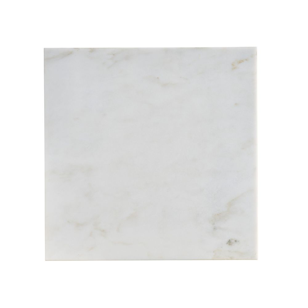 Feature 1: The square end table features an architectural base design and a White Agate stone top with protective sealer.