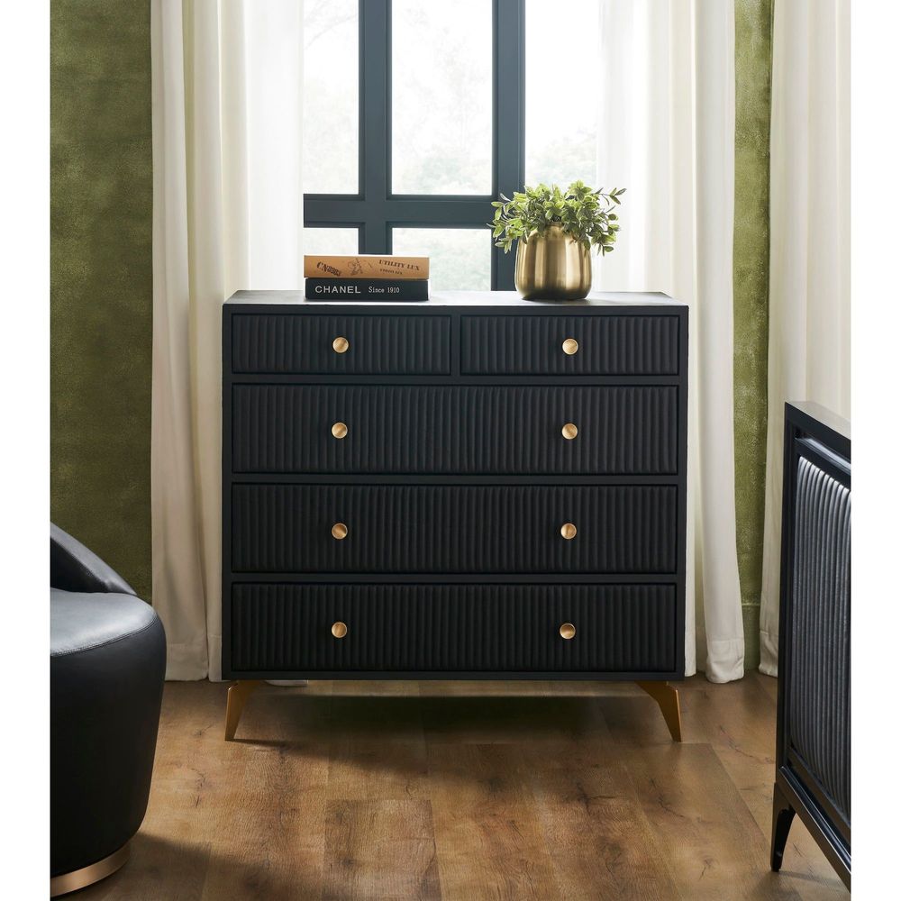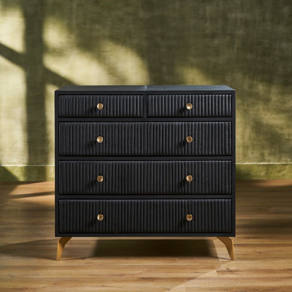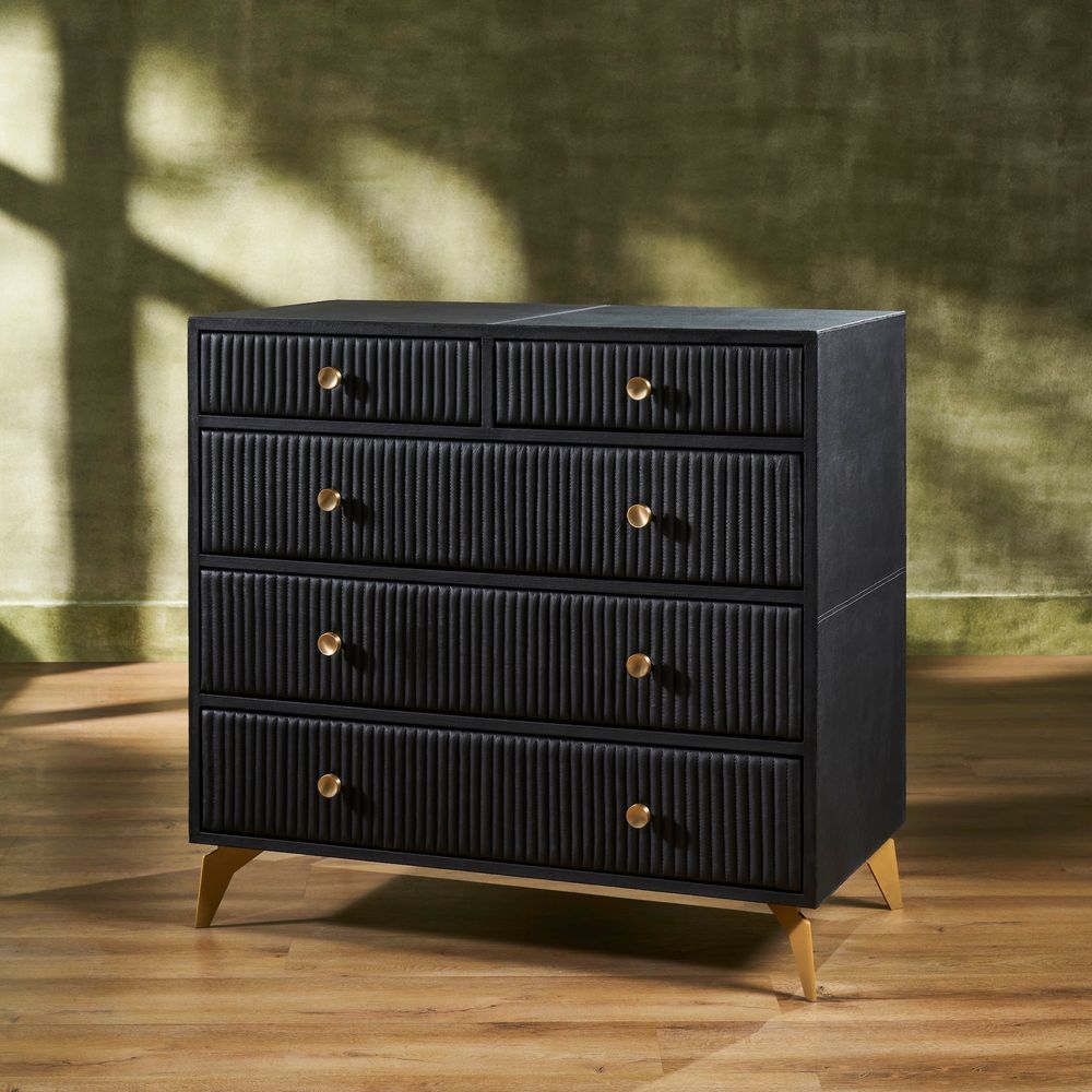 Stanford Five Drawer Leather Wrapped Chest - Black