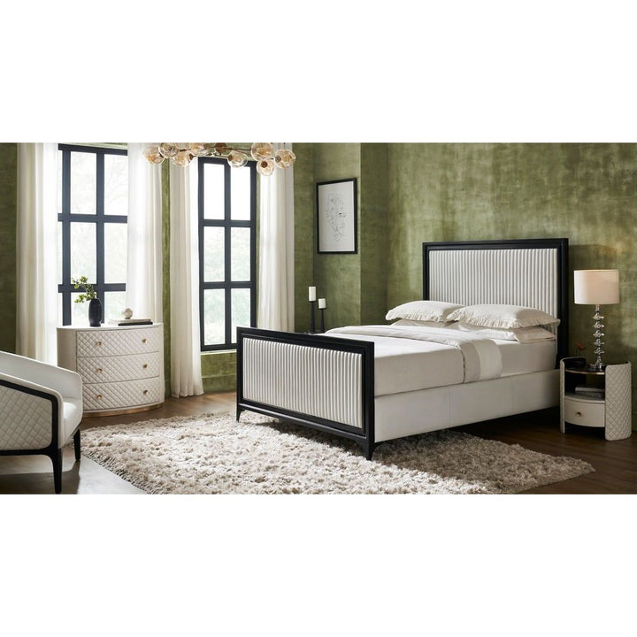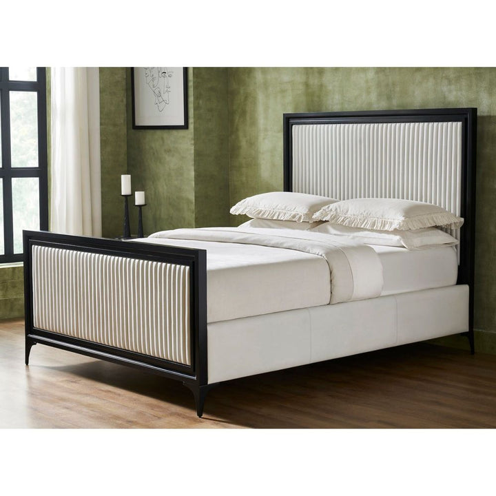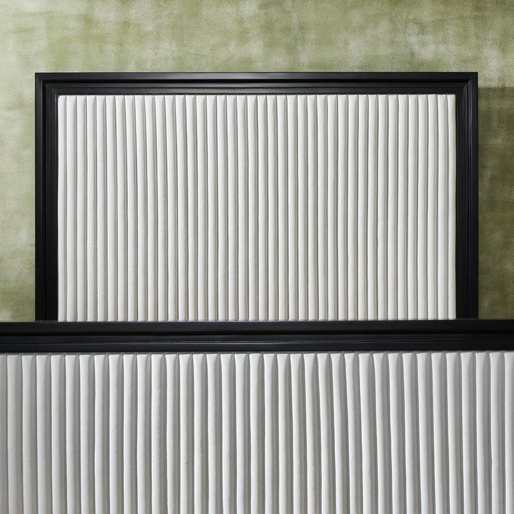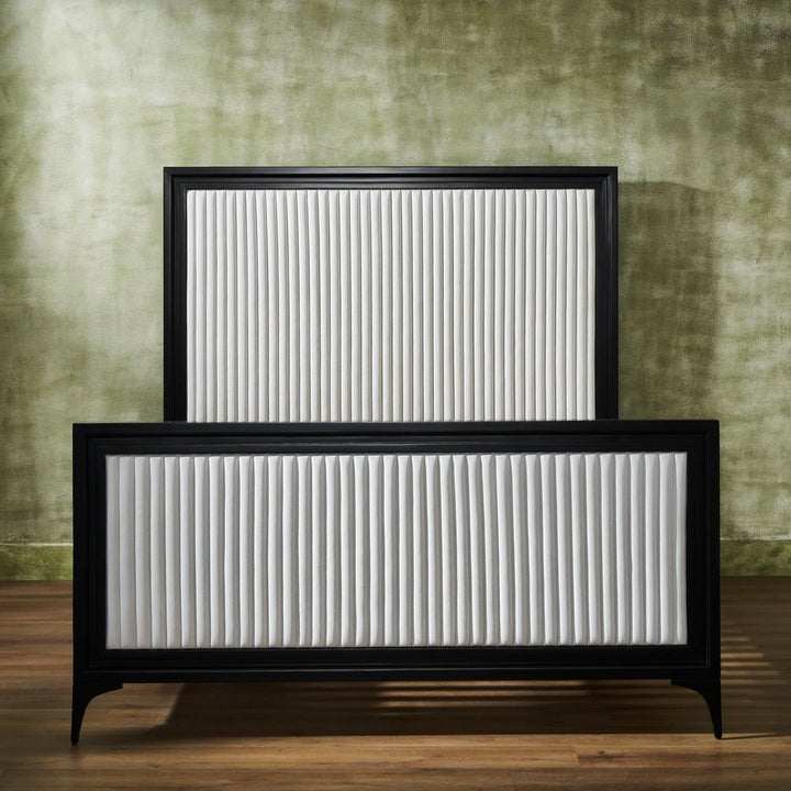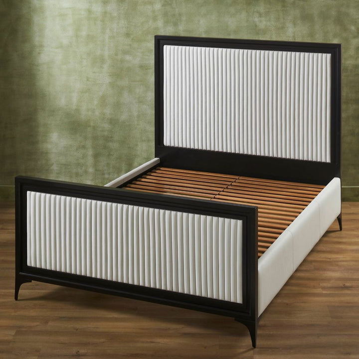 Description of construction: Genuine top grain leather with stripe quilting. Headboard & footboard padding crafted of variable - density polyurethane foam topped with polyfiber. Structure handcrafted with scandinavian steam beech solid hardwood & engineered wood. Matte automotive paint finish. Wooden slat support on metal frame. Leg made of iron with black paint finish.