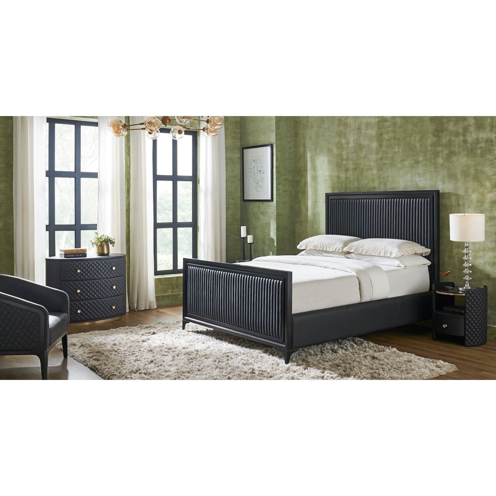 Stanford Leather Queen Bed - Black