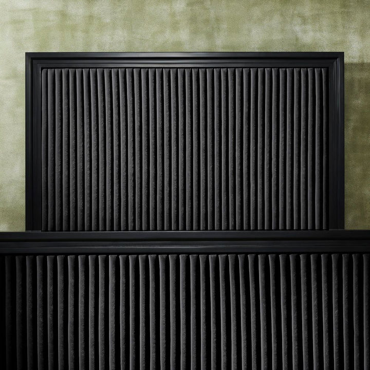 Description of construction: Genuine top grain leather with stripe quilting. Headboard & footboard padding crafted of variable - density polyurethane foam topped with polyfiber. Structure handcrafted with scandinavian steam beech solid hardwood & engineered wood. Matte automotive paint finish. Wooden slat support on metal frame. Leg made of iron with black paint finish.