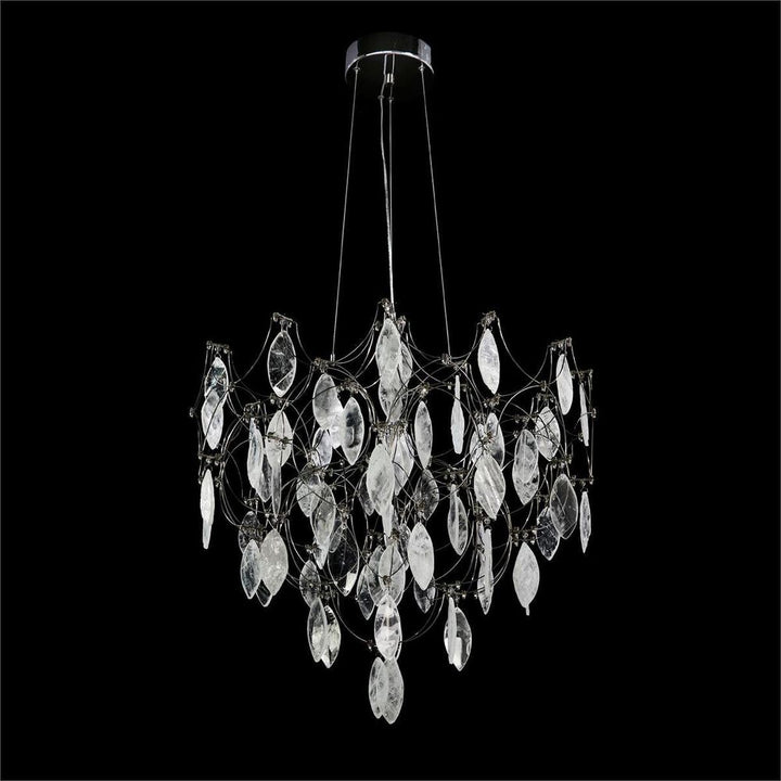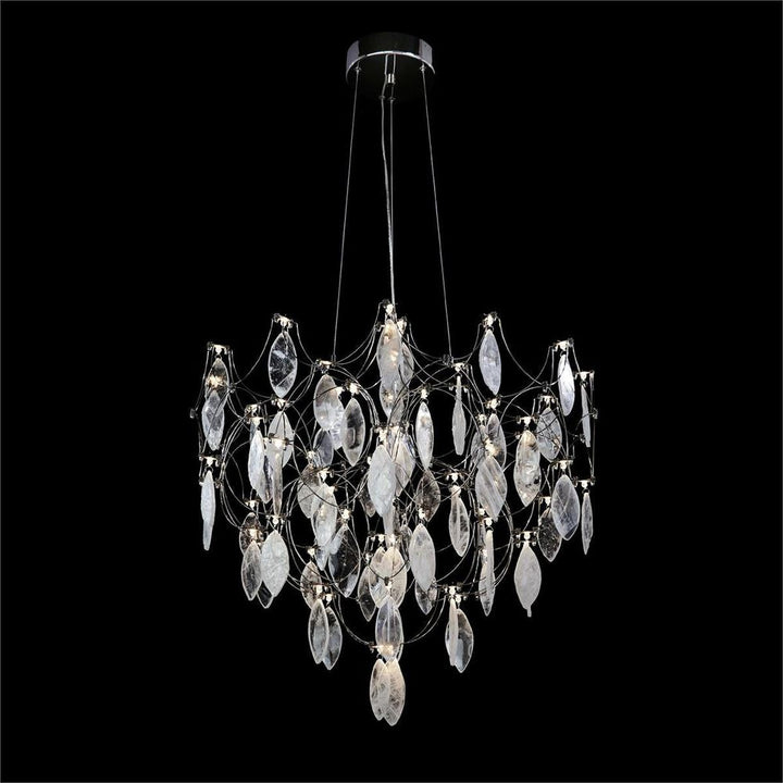 The Stone Grove Chandelier showcases natural motifs that imbue an interior space with an elegant ambiance. Crafted from Polished Stainless Steel, the airy frame features a stunning arrangement of gorgeous selenite leaves to create a serene look. The piece features seventy-eight LED beads, providing a wealth of illumination in any space.