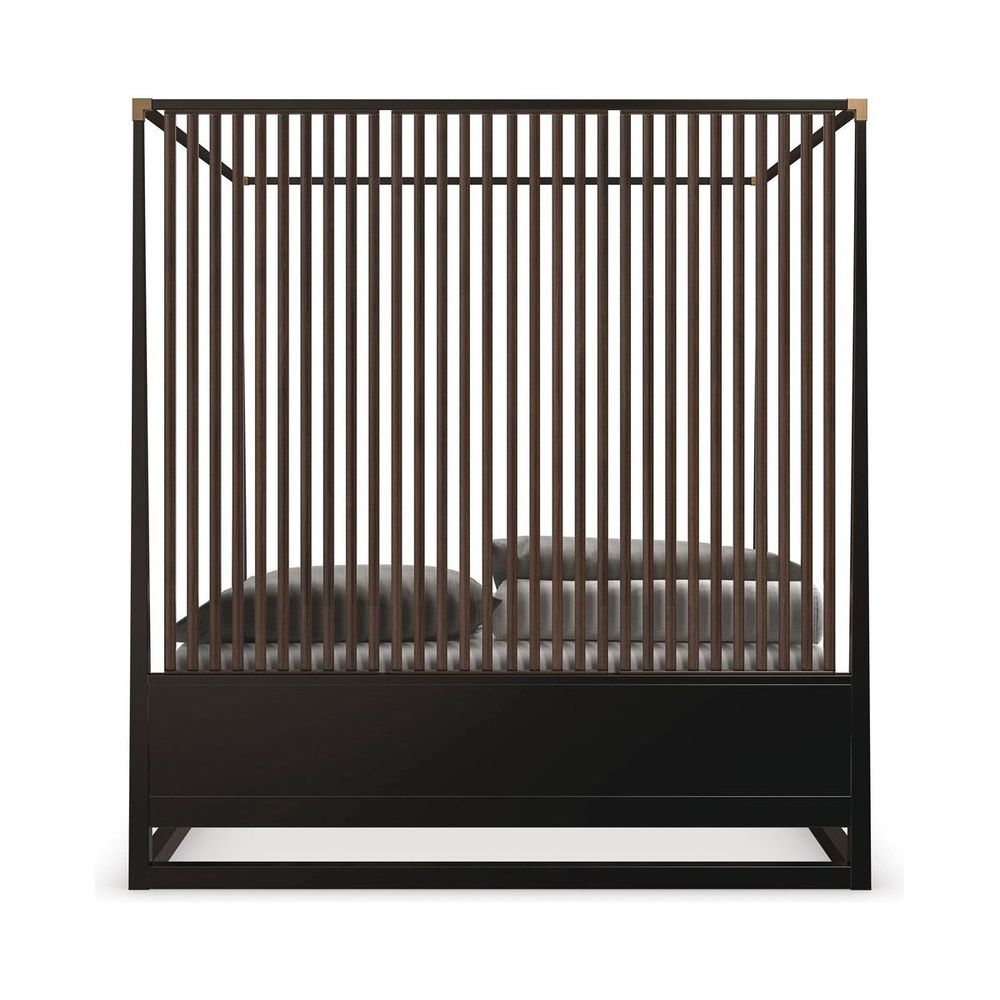 - Headboard frame, siderails, footboard, posts and canopy in Dark Chocolate.