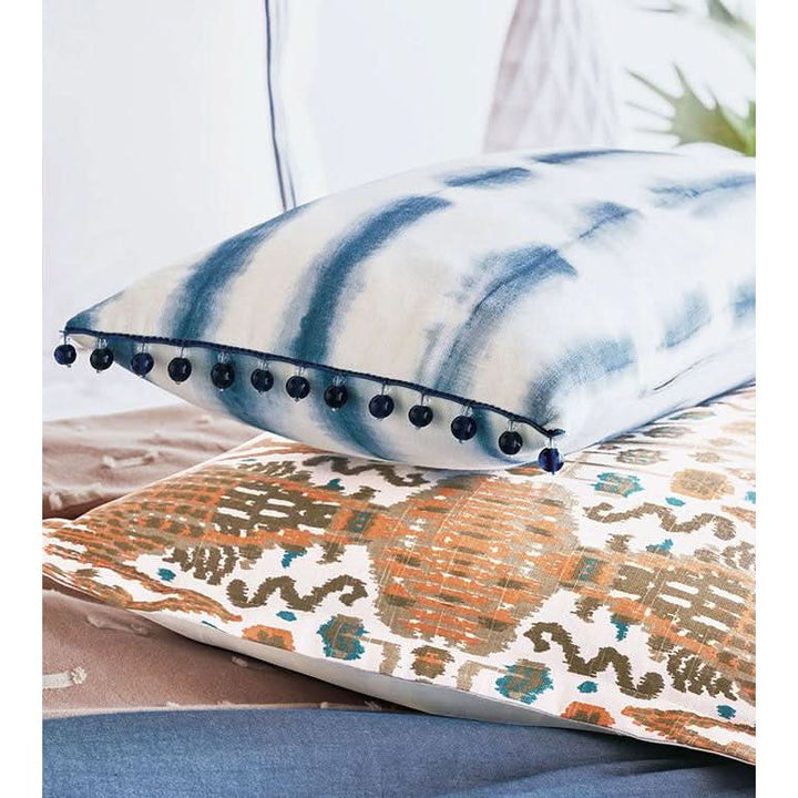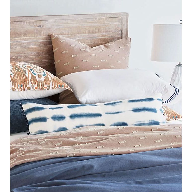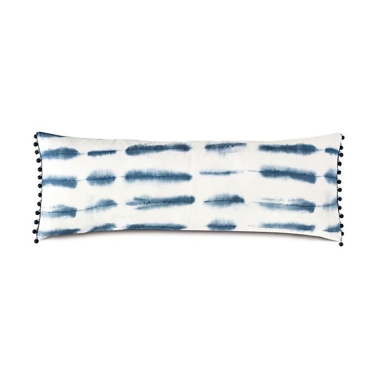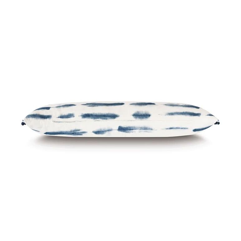 - Blueoblong pillow in a shibori-inspired 100% cotton fabric