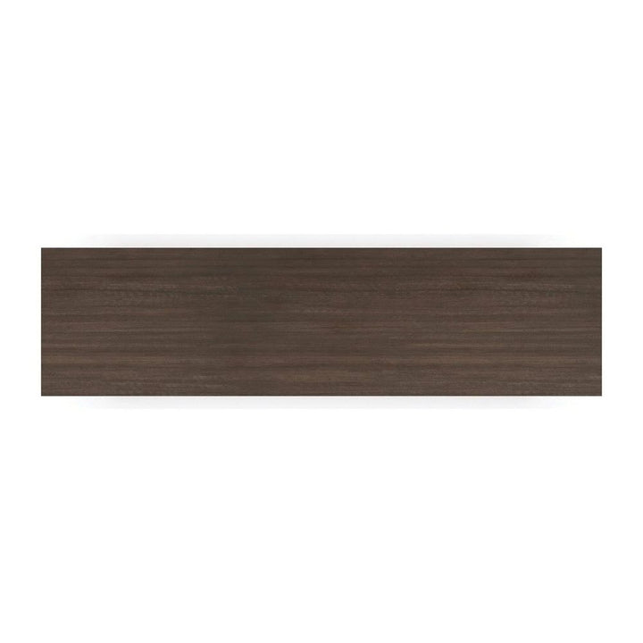 Features: Top and end panels finished in Otter.Three touch latch doors and three touch latch drawers with fronts in Mica Silverleaf.One adjustable shelf behind each door.Interior in Dark Chocolate.