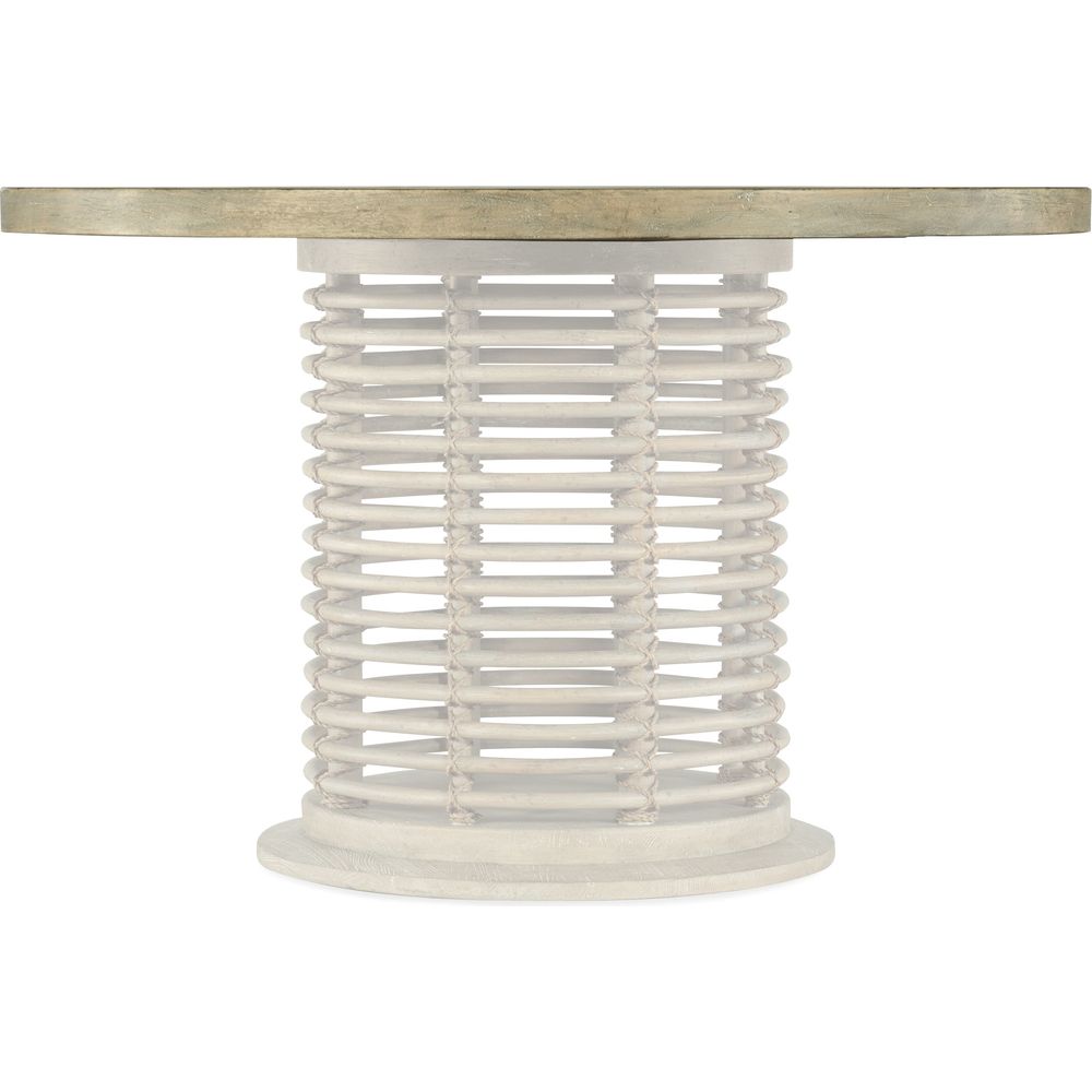 Linger and relax around this 48-inch round rattan table inspired by the laid-back California coast. A marvel of craftsmanship, the Surfrider table combines natural materials of cane, rope and Pecan Veneers with a solid wood edge top and hand-tied jute rope on the table base. Epitomizing the lifestyle of a casual, beach-town community, the Surfrider dining table includes the base and top and features the light natural Driftwood finish with distressing including sandblasting and bleaching. Melding the salty, yet cozy oasis of the California coastline with a modern surf culture, Surfrider is defined by the use of natural materials including rattan, jute rope, stone, gypsum, bamboo and driftwood motifs. Designed to create relaxing spaces to escape from the pressures of modern life, it is featured in a light, natural Driftwood finish. Luxurious materials, shapes and textures combine to create a relaxed, yet sophisticated style that epitomize the lifestyle of a casual, beach-town community.