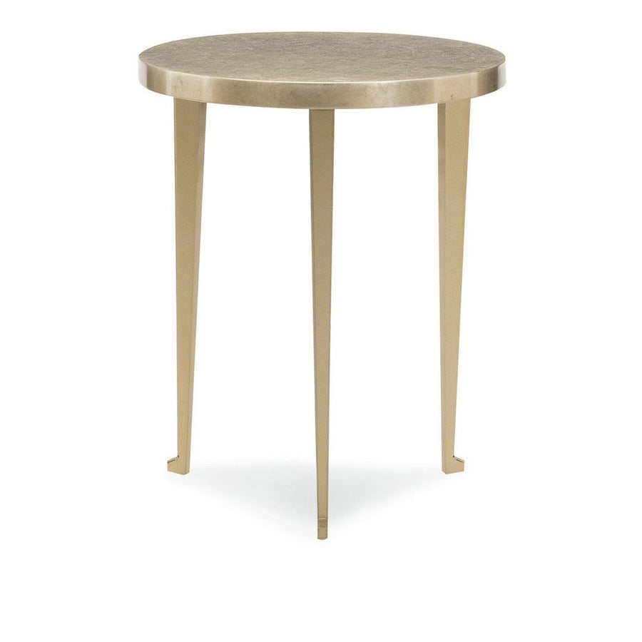A treasure in itself, this petite table makes it easy to create an artful space. Glowing with the warmth and richness of pure honey, it features an intriguingly unique top created from layers of Golden Blonde Leaf applied in alternating patterns. Perfect next to a chair or anywhere you need a touch of brilliance, its eye-catching look is finished with three legs wearing a Golden Shimmer finish.