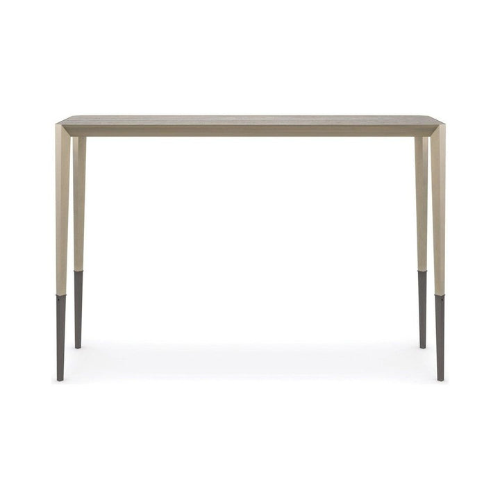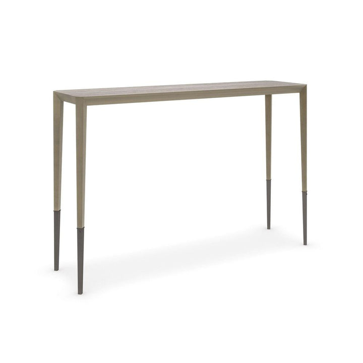 An elegant nesting table when paired with Perfect Together-Short, this console makes a casual luxe statement in a classic mix of metal and stone. Its streamlined design features a Brushed Antique Brass-finished frame with tall tapered legs, capped in Deep Bronze metal ferrules for added distinction. A silver Travertine top introduces an organic element, showcasing the exquisite variations in color and veining found in natural stone. Style as a sofa table or a console in halls and entryways.